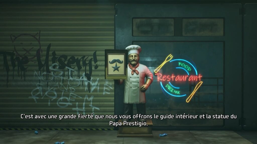 Le problème, c’est qu’en plus de n’avoir aucune direction artistique, ressemblant à un énième jeu de tir avec des assets Unreal Engine à la limite du libre de droit, Pizza Bandit ne s’embarrasse avec aucune règle venant apporter à une œuvre un minimum de bienséance visuelle. C’est d’une platitude folle, c’est vieillot et très linéaire, c’est un peu comme ces faux jeux vidéo des films des années 2000 et vraiment, ce n’est pas un beau compliment. On est sur une flemme intersidérale de la part des concepteurs. On dirait vraiment une Game Jam qui a mal tourné, financée curieusement par Krafton qui a apparemment davantage d’argent à jeter par les fenêtres que prévu. Et pourtant…