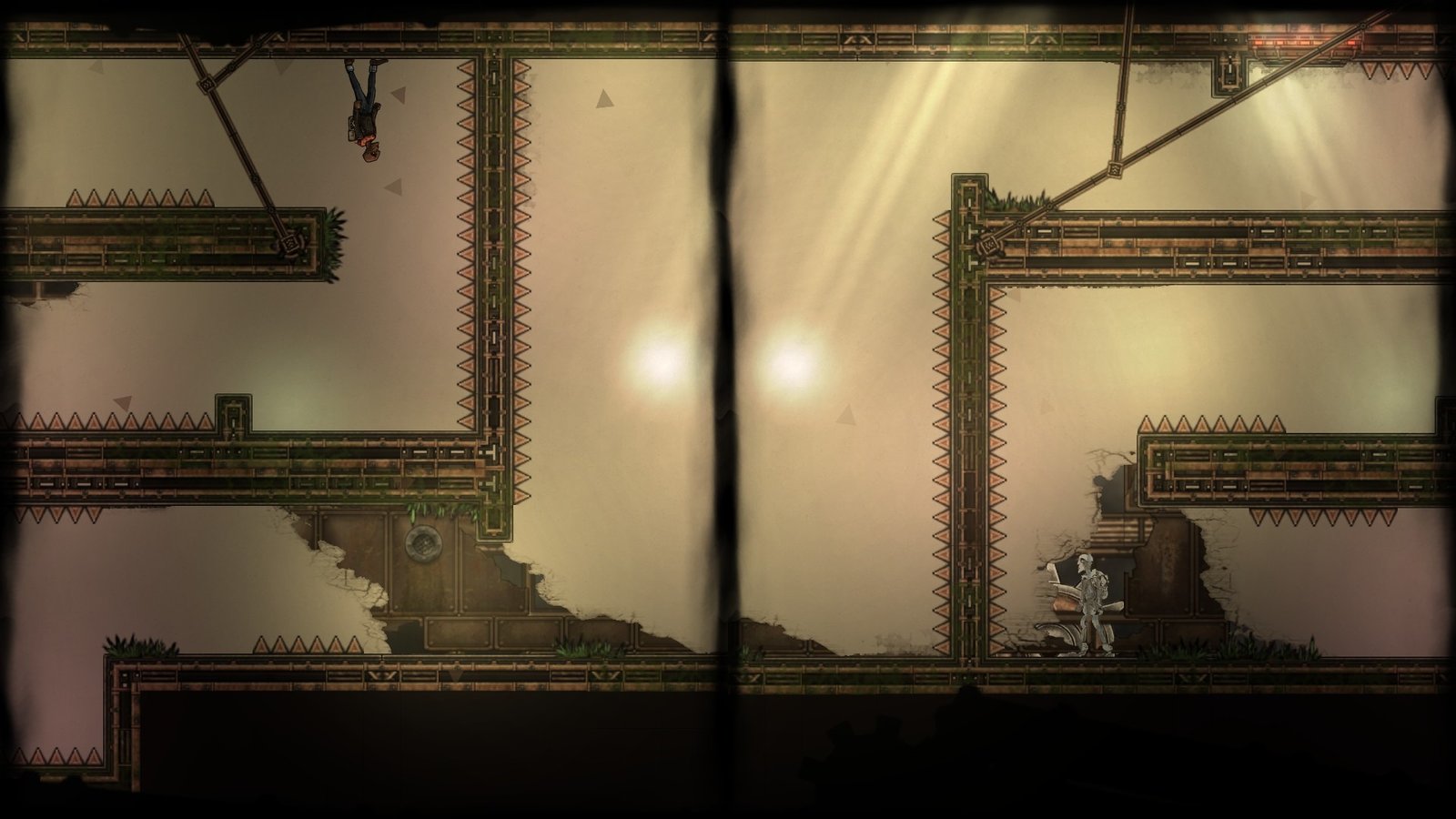 In Between est un puzzle-platformer proposant un gameplayOu « jouabilité » en français, fait référence à la façon dont le joueur interagit avec un jeu vidéo. où le joueur manipule la gravité et résout des énigmes environnementales afin d’atteindre la fin de chaque niveau. Loin de se contenter d’un simple jeu d’énigmes, le studio Gentlymad ajoute un sens réel à cette rude traversée en nous contant l’histoire d’un homme aux portes de la mort.