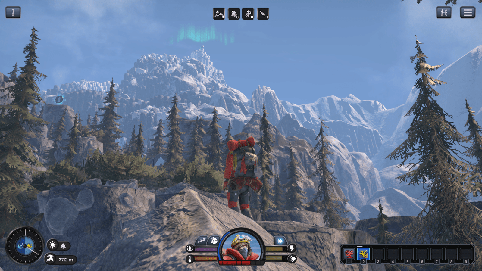 L’aspect survie n’empêche pas le jeu des Allemands de ByteRocker’s Games d’avoir un sacré charme visuel, celui des glaciers, des pics acérés et des pierriers. S’il se montre schématique avec ses cases hexagonales, le jeu ne se montre pas avare en effets climatiques marquants, et le beau temps qui suit la tempête vous procurera de beaux moments de soulagement et de contemplation du chemin parcouru. L’animation est également plutôt soignée, avec des mouvements de doudoune Quechua convaincants dans l’effort comme dans la souffrance, et on suit avec tendresse et crainte le parcours initiatique de notre petite alpiniste si courageuse.
