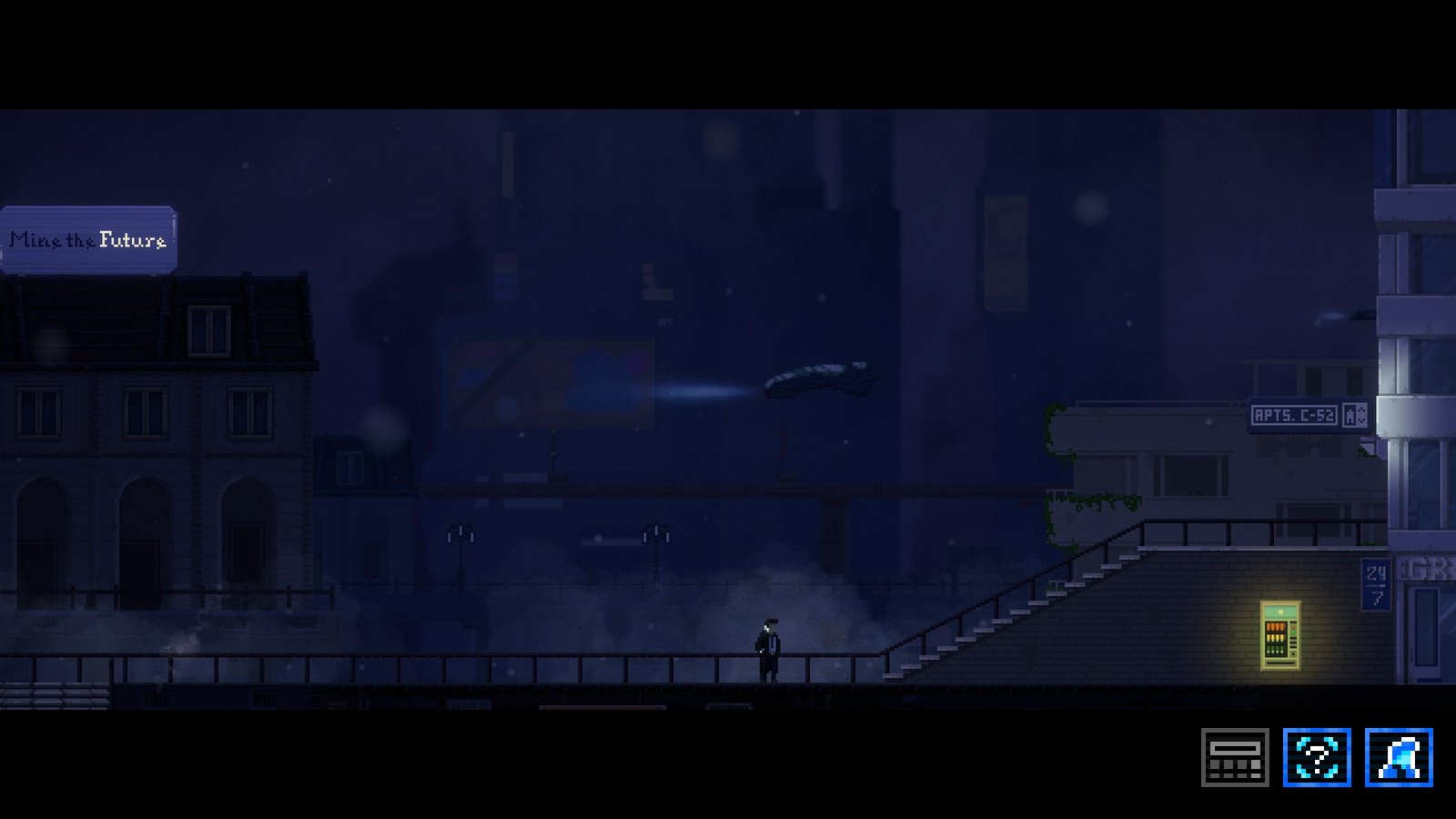 Au niveau visuel, Lacuna présente un pixel art dans la moyenne, sans être exceptionnel. Il offre cependant quelques beaux paysages de sa ville futuriste. L’habillage sonore est lui plutôt plaisant dans l’ensemble, alternant des sonorités jazz et synthwave, avec quelques morceaux qu’on voudra ajouter à sa playlist personnelle et qui viennent bien marquer les moments de tensions de l’histoire.