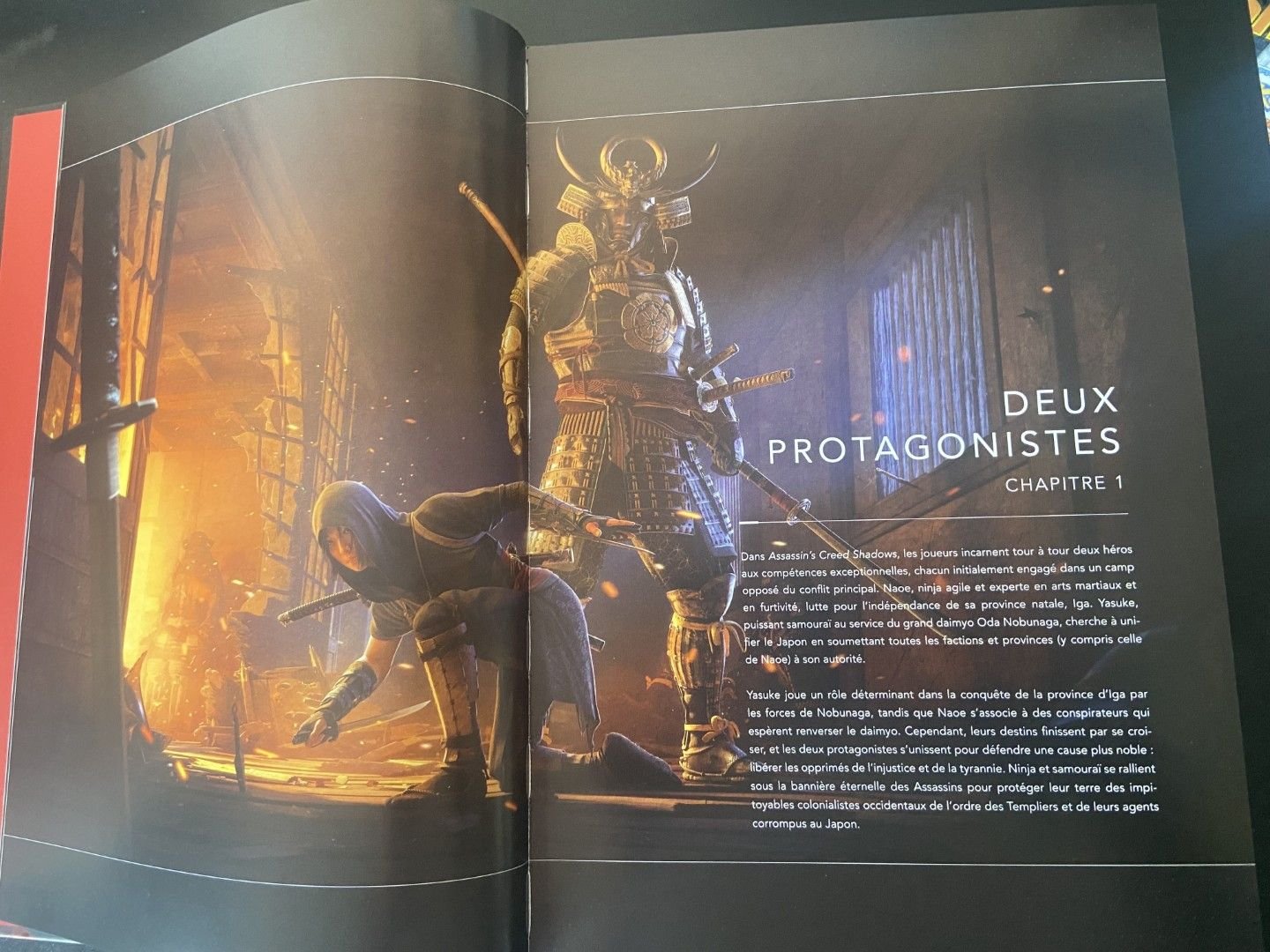 D’un point de vue purement “produit”, on a de la qualité : les pages ne sont pas trop brillantes comme c’est souvent un peu trop le cas avec certains livres, tout en faisant rayonner les visuels avec un papier qu’on appréciera beaucoup autant pour son visuel que son toucher. Ce n’est pas du détail et on a l’habitude avec Mana Books : leur formule est désormais plutôt rodée et on leur fait confiance sur cela. Ce “ L’art de Assassin’s Creed Shadows ” ne trahit rien.