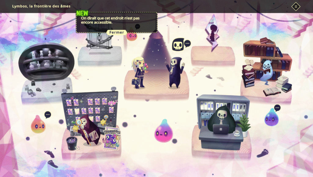 Les salles se suivent et se ressemblent, mais c’est normal : que vous finissiez ou non le donjon, que vous vainquiez le boss final ou non, vous reviendrez toujours aux limbes mais avec quelques esprits glanés que vous pouvez dépenser dans une grande carte de choses à débloquer. C’est ainsi que vous gagnerez davantage de mana (pour toujours plus d’exploration), de bonus de début de combat, de nouvelles compétences, capacités, mécaniques de jeu annexes (les orbes à équiper sur vos héros par exemple) et bien d’autres choses. L’aspect rogue-like prend tout son sens et donne du sel à ce plat de qualité qu’est Vivid World, mais qui aurait pu être très vite plutôt fade.