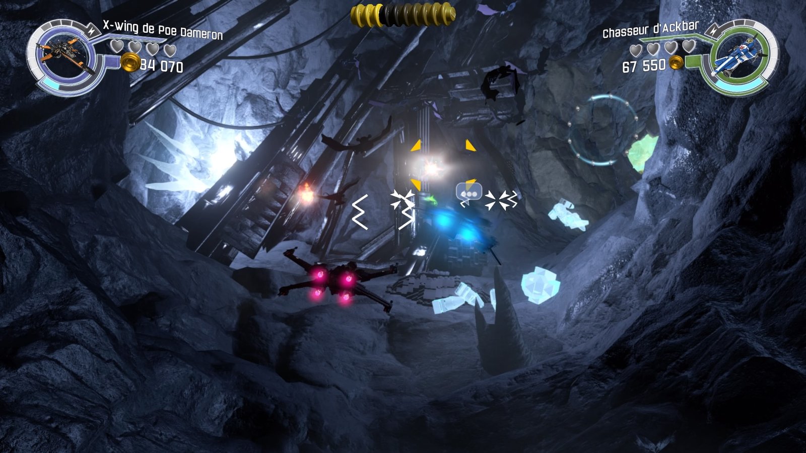Ce Réveil de la Force offre deux « grandes » nouveautés de gameplayOu « jouabilité » en français, fait référence à la façon dont le joueur interagit avec un jeu vidéo.. La première est la présence de combats spatiaux : désormais sur rails dans certains niveau scénarisés, mais aussi totalement libre de mouvements et de tirs dans d’autres passages du jeu, le contrôle des vaisseaux de la franchise Star Wars se fait de façon très fluide, amusante, avec des animations réussies mais cependant simplifiées à l’extrême (avec visée automatique). On est face à une totale absence de difficulté, comme toujours dans les jeux LEGO, mais c’est assez réussi en termes de maniabilité et de fun procuré.