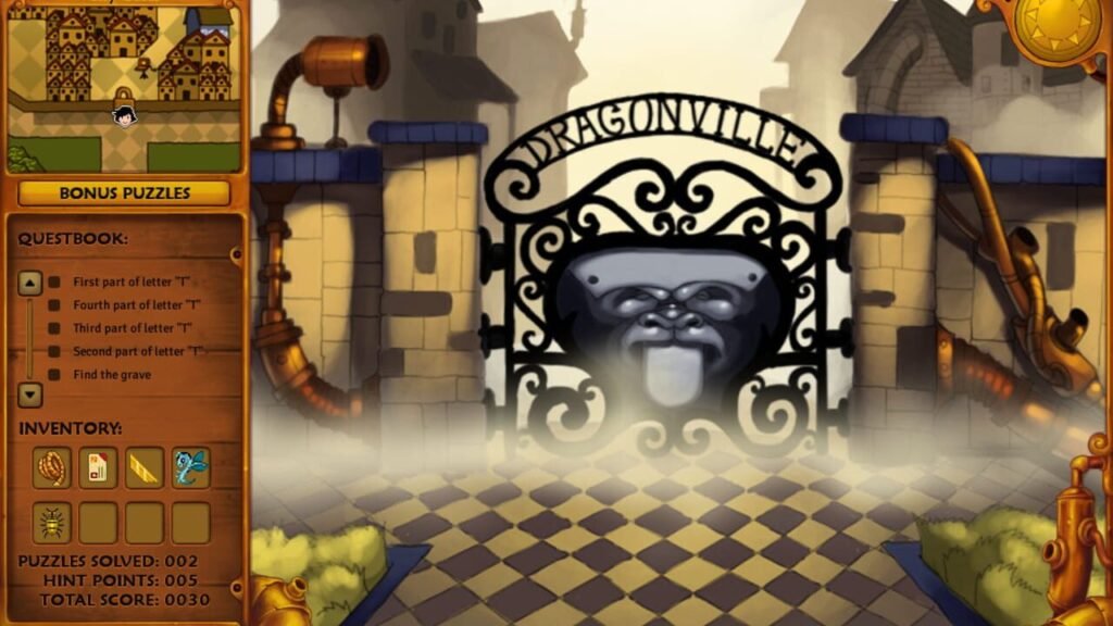La progression se fait de la même façon, à travers un scénario à la fois enfantin et haut en couleurs. Le jeu nous raconte l’histoire de May et de son frère, victimes d’un accident de ballon. May se retrouve au bord d’une curieuse ville aux étranges personnages, avec une principale raison de fouiller les lieux de fond en comble : son frère à disparu. Comme dans Layton, chaque personnage rencontré fera face à une énigme présumée indéchiffrable que le joueur devra mener à son terme. Plusieurs types d’énigmes sont au rendez-vous avec les traditionnels casse-tête mathématiques, les allumettes, les jeux de taquin, les problèmes de poids, de simples puzzles ou alors, sans doute afin d’attirer un public habitué aux productions casual, de petites séquences de jeu ou il s’agit de trouver des objets dans un décor « capharnaumesque ». Dans la plus pure lignée de ces titres estampillés Big Fish et autres petits éditeurs, qui envahissent le rayon PC de nos boutiques favorites. Dans May, ce genre d’épreuves a toute sa place et ne tombe pas comme un cheveu dans la soupe. C’est bien fait, justifié et donc agréable à jouer.