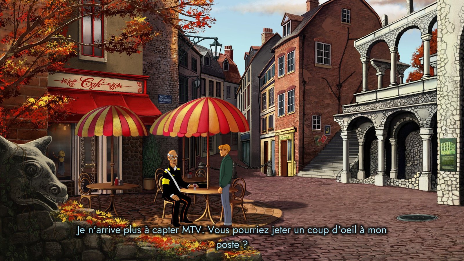 D’emblée, ce qui choque, c’est le travail accompli par les artistes pour refaire les environnements. Tout a été redessiné, recoloré et rendu encore plus lisible. On disait déjà à l’époque qu’on avait l’impression d’être devant un dessin animé interactif, c’est encore plus vrai maintenant. Les animations des personnages et les décors sont toujours aussi détaillées, mais avec une définition bien plus élevée et qui ne laisse plus place à l’interprétation. Et comme ils sont joueurs chez Revolution, un simple appui sur la touche Tab permet de repasser à l’ancienne version afin de constater la différence. Certains lieux sont non seulement plus détaillés, mais aussi plus contrastés, les couleurs sont éclatantes, les ombres plus sombres, et l’atmosphère mystérieuse est décuplée par cette refonte graphique, tout en conservant son charme. On appréciera les différentes aides, pour ne plus avoir à faire de la chasse aux pixels, et le retour des actions à réaliser en temps limité, qui peuvent générer un game over. Celles-ci se réalisaient automatiquement dans la version Director’s Cut et enlevaient donc les séances où George se faisait tuer.