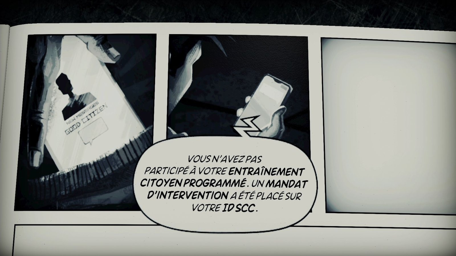 C’est à partir de ce moment où j’ai eu des doutes quant à la direction que prenait l’équipe en charge du scénario. Au lieu de nous mettre dans la peau d’une pure victime du système comme on pourrait le lire dans le livre 1984, on nous balance une histoire digne de Mr. Robot avec un hacker très mystérieux. Son récit se termine subitement à la fin du premier chapitre (le jeu en comporte quatre).