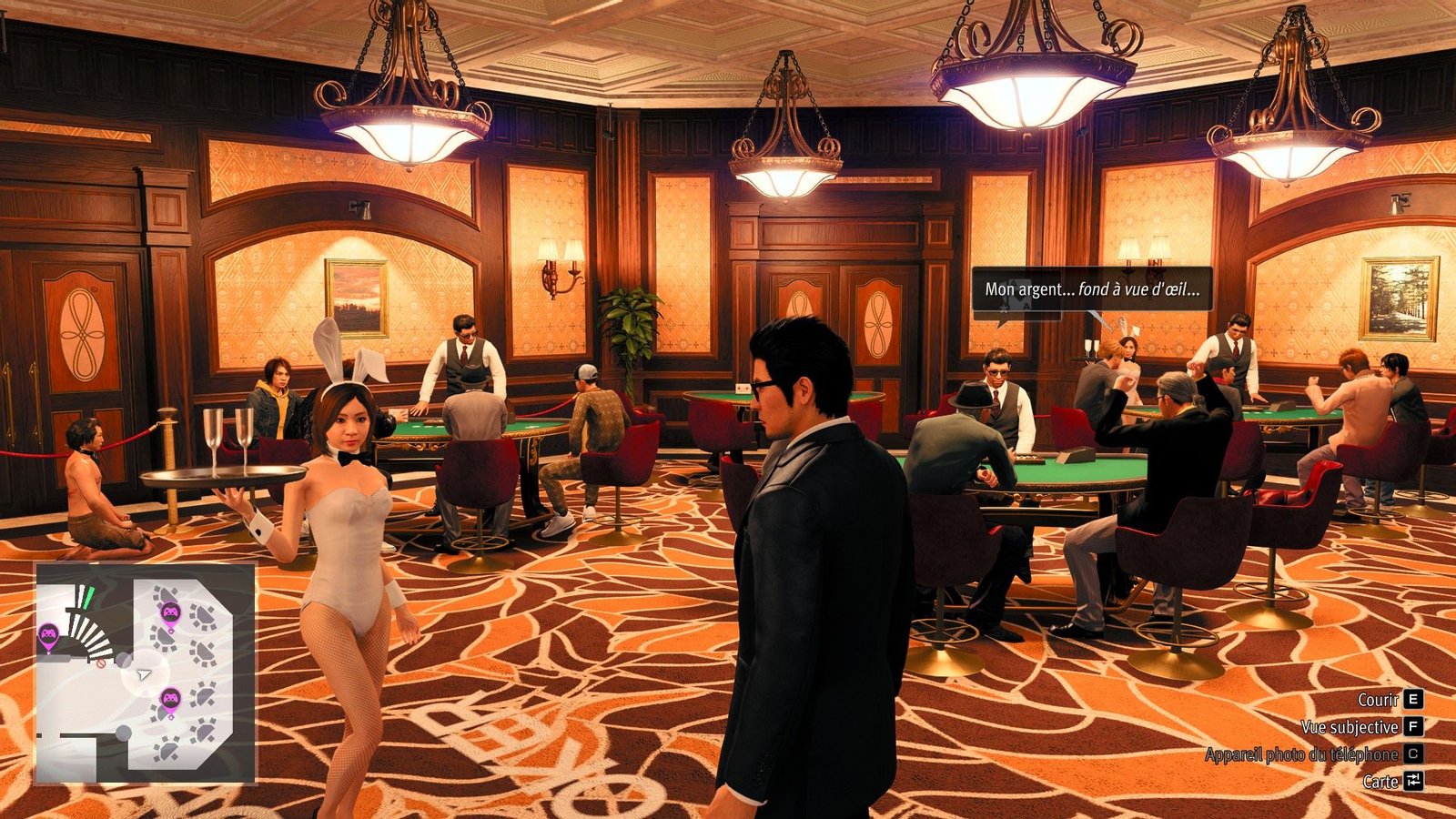 Il vous est aussi proposé de relever des défis au blackjack, au poker, aux fléchettes, au koi-koi, au oicho-kabu, au mahjong, au shogi, au golf, au billard, au karaoke… ou jouer aux machines à pince. Largement de quoi vous perdre pendant des heures. Il y a encore les bornes d’arcade avec de vieux jeux Sega (Virtua Fighter 2.1, Fighting Vipers 2, Sonic the Fighters, Sega Racing Classic, Motor Raid), auxquels vous pouvez même jouer à 2 joueurs à partir du menu principal. Et les courses de pocket circuit, avec personnalisation des petites voitures, sont de retour. Il y a même des bars à hôtesses que vous pouvez fréquenter en essayant de mieux connaître chacune d’entre elles en leur offrant à boire ou, mieux, des cadeaux. Notons que ces lieux de dépravation proposent des images réelles, comme d’autres séquences du jeu, avec de vraies actrices à séduire. Pour le reste du jeu, même si cela est inégal, le moteur Dragon Engine fait tout de même bien son taf. Vous pouvez d’ailleurs alterner entre la traditionnelle vue à la troisième personne et une vue subjective plus immersive. Les cinématiques narratives qui viennent parfois entrecouper les bastons sont globalement sympathiques, mais elles peuvent parfois s’étirer en longueur, il ne faut pas craindre les longs discours.