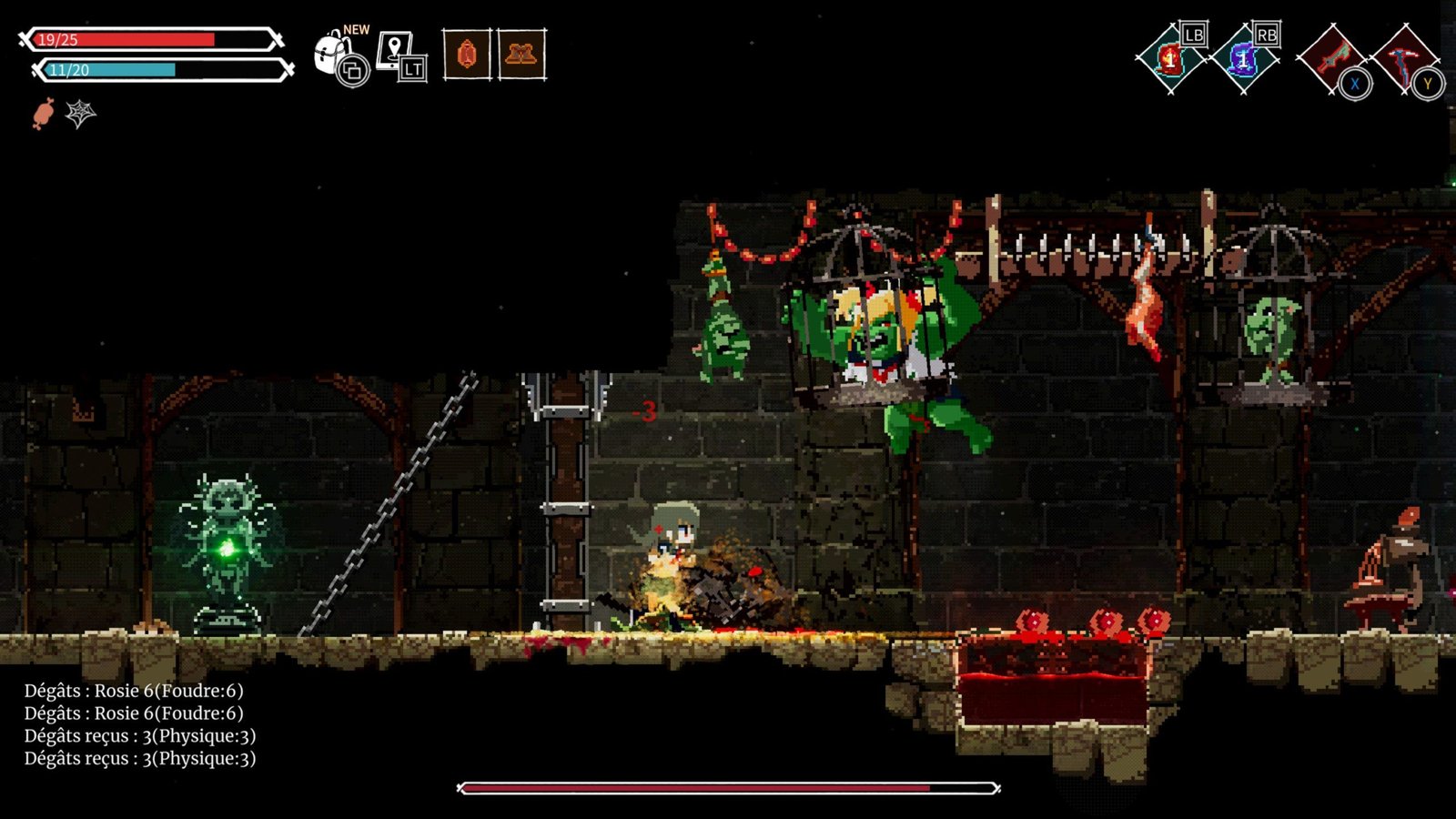 Il fait pourtant les choses si bien qu’il plaira à qui voudra jouer à un bon jeu d’action 2D aux accents de survival . Lost Ruins est en effet assez difficile. Pas d’accès, tout y est compréhensible, des armes aux sorts de magie, en passant par les armures et autres artefacts aux bonus passifs. Sa difficulté vient d’ennemis de plus en retors à mesure de notre progression, et surtout de boss puissants et en apparence impardonnables. Les timings de leurs attaques sont serrés, et, nécessitent une bonne maîtrise de ceux de nos armes pour pouvoir taper ou contre-attaquer au bon moment.