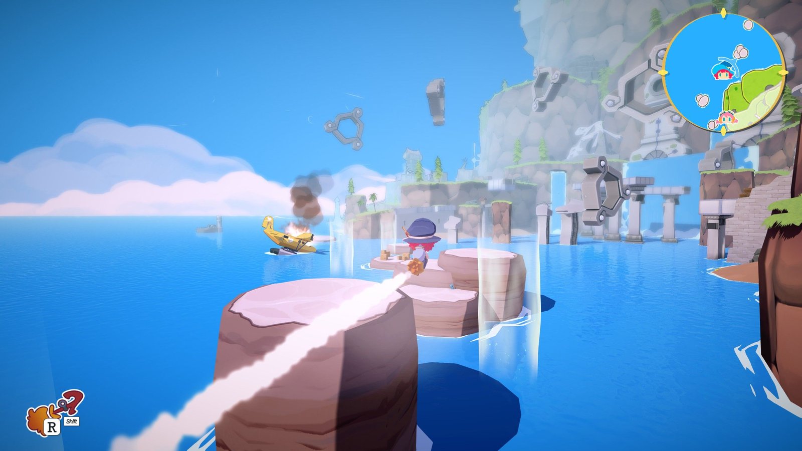 Mais dis donc Jamy, s’il n’y a aucune contrainte, ni aucune conséquence, le jeu n’est pas un petit peu sans intérêt ? Alors oui, mais non. Le maniement de Mika est plutôt agréable et le système de vol en balai où on doit se fier aux courants aériens est fluide, sans véritables accrocs. L’histoire du jeu prend trois petites heures à faire, mais pour autant l’île est bourrée de bidules à ramasser et de colis non affectés ou perdus à redistribuer. Une fois le balai amélioré au maximum (c’est automatique), on peut vraiment profiter des paysages de et se balader partout, dans une ambiance « tout le monde, il est beau, tout le monde, il est gentil ». On peut rencontrer une petite bande de personnages qui ont tous un truc sympa à dire, des petits tracas à résoudre. Le jeu est attirant, les graphismes tout en aplat de couleurs font furieusement penser à Mega Man Legends, l’univers bien qu’inspiré de Ghibli a des personnages originaux et attachants. Grâce à son scope et sa durée de vie, il est tout à fait adapté à de jeunes enfants, ou à des adultes peu regardants. C’est naïf, c’est charmant, c’est facile. Bref, de quoi occuper un dimanche pluvieux d’hiver.