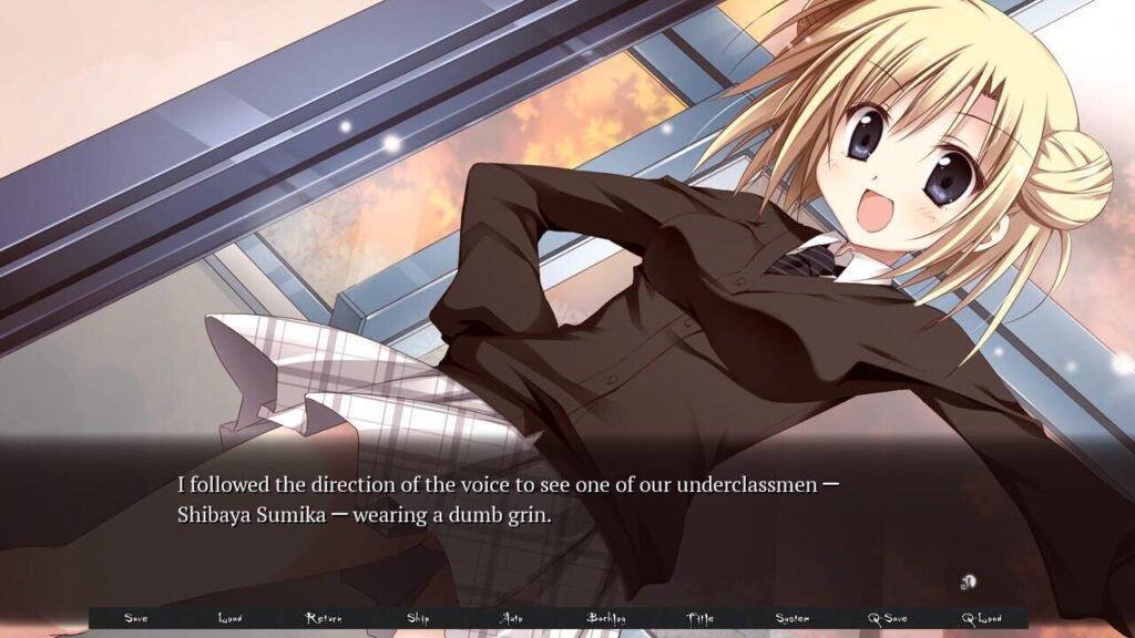 L’histoire débute par une compilation de clichés mille fois vues dans la production japonaise et pour ceux qui n’en seraient pas des habités, j’ai pris la liberté de les surligner en prenant comme excuse que le jeu lui-même n’hésite pas à le faire lourdement. Yasunari est un lycéen en classe de première,  sans réelle personnalité mais qui semble plutôt apprécié. Le jeu débute alors qu’il aide sa classe à préparer le festival culturel de son établissement prévu pour démarrer le lendemain. Dans la même classe, on retrouve également sa meilleure amie qu’il connaît depuis l’enfance et dont les parents sont morts dans de mystérieuses circonstances dont elle comme lui ont perdu tout souvenir. (c’est bien pratique ! ) Il s’est également lié d’amitié avec une jeune seconde hyper active et un peu nunuche (dans le langage des otakus, on appelle ça une genki) ainsi qu’un membre du comité des élèves qui semble cacher beaucoup de choses derrière un tempérament provoquant et une désinvolture de façade. Le lycée auquel ils appartiennent est toutefois particulier, il est non seulement relativement isolé du reste du monde et fait l’objet d’étranges rumeurs au sein de ses élèves. Des évènements mystérieux et sanglants entoureraient les lieues lors du festival mais, comme tout bon héros, Yasunari n’y crois guère.