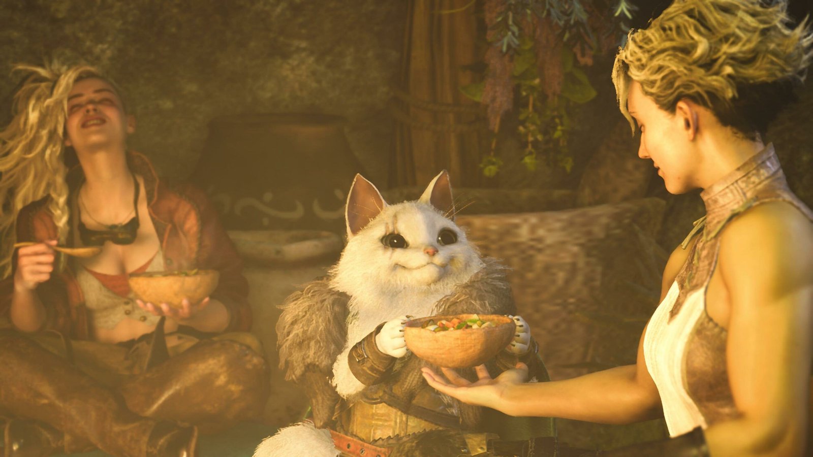 On garde aussi toutes les idées d’avant : la pêche, le filet de capture (qui fonctionne aussi sur les poissons tant qu’à faire), les capes qui vous procurent quelques bonus (à débloquer tout au long du scénario), les repas avant la chasse pour gonfler les stats, etc. Bref, Monster Hunter Wilds c’est Worlds + Rise + de la nouveauté… Et c’est génial.