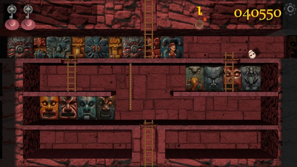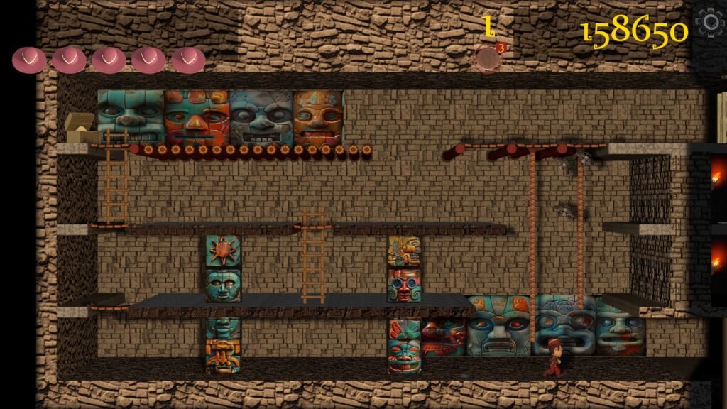 Loin de moi l’idée d’empêcher quiconque de ressortir un jeu datant de l’époque de Matthieu Zalem (un mec qui vivait il y a longtemps, je crois), mais il faut que ce soit fait avec un minimum de goût quand même. Moderniser des graphismes, c’est un métier qui demande un artiste ou un graphiste (et dans le meilleur des cas, les deux) et pas juste une recherche vague sur internet pour trouver des PNG qui iraient globalement dans la thématique. J’ai l’impression que les gens de la direction artistique du jeu étaient très fans de l’esthétique des jeux 3DO, à l’époque où mettre des photos digitalisées suffisait à impressionner la galerie, et où les graphismes « réalistes » étaient une qualité (alors qu’ils ne sont rien sans direction artistique, on le voit bien avec le jeu qui nous agresse aujourd’hui). N’y allons pas par quatre chemins, c’est turbo moche. Les graphismes sont faussement modernes, les personnages sont animés avec les pieds, et n’ont aucun charme (et des grands yeux de poisson). Et… voilà, y a rien de plus à dire. Le gameplayOu « jouabilité » en français, fait référence à la façon dont le joueur interagit avec un jeu vidéo. est évidemment préhistorique (encore que, de manière assez incompréhensible, les interrupteurs du jeu original ont disparu), rigide, et globalement le jeu n’a pas grand chose d’amusant. J’imagine que pour les gens comme moi, qui ont eu un C64 ou un Atari ST et Montezuma’s Revenge à l’époque, pourraient trouver ça sympa, de pouvoir s’y replonger, mais les graphismes de la nouvelle version sont vraiment, vraiment vraiment, VRAIMENT, une insulte à la muse des arts picturaux.