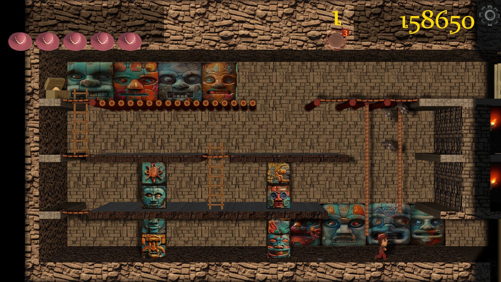 Loin de moi l’idée d’empêcher quiconque de ressortir un jeu datant de l’époque de Matthieu Zalem (un mec qui vivait il y a longtemps, je crois), mais il faut que ce soit fait avec un minimum de goût quand même. Moderniser des graphismes, c’est un métier qui demande un artiste ou un graphiste (et dans le meilleur des cas, les deux) et pas juste une recherche vague sur internet pour trouver des PNG qui iraient globalement dans la thématique. J’ai l’impression que les gens de la direction artistique du jeu étaient très fans de l’esthétique des jeux 3DO, à l’époque où mettre des photos digitalisées suffisait à impressionner la galerie, et où les graphismes « réalistes » étaient une qualité (alors qu’ils ne sont rien sans direction artistique, on le voit bien avec le jeu qui nous agresse aujourd’hui). N’y allons pas par quatre chemins, c’est turbo moche. Les graphismes sont faussement modernes, les personnages sont animés avec les pieds, et n’ont aucun charme (et des grands yeux de poisson). Et… voilà, y a rien de plus à dire. Le gameplayOu « jouabilité » en français, fait référence à la façon dont le joueur interagit avec un jeu vidéo. est évidemment préhistorique (encore que, de manière assez incompréhensible, les interrupteurs du jeu original ont disparu), rigide, et globalement le jeu n’a pas grand chose d’amusant. J’imagine que pour les gens comme moi, qui ont eu un C64 ou un Atari ST et Montezuma’s Revenge à l’époque, pourraient trouver ça sympa, de pouvoir s’y replonger, mais les graphismes de la nouvelle version sont vraiment, vraiment vraiment, VRAIMENT, une insulte à la muse des arts picturaux.