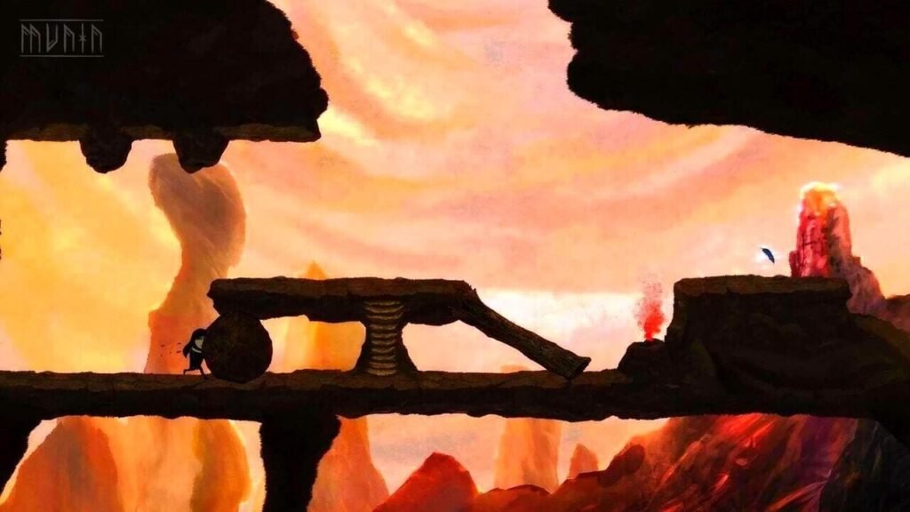 Oui, Munin est un régal à terminer. Le titre de Gojira se présente sous la forme d’une peinture un peu abstraite animée en quelques frames (pour le fond des niveaux) . Le cachet “nordique” y est et la patte graphique est tout simplement superbe. Munin est beau et dépaysant. Chaque chapitre se base sur un des endroits gardés par l’arbre-monde de la mythologie scandinave. Ainsi nous pourrons admirer la verdoyante Midgard, le glacial Niflheim, ou l’inquiétant Heilheim. La musique n’est pas en reste et souligne de façon subtile les différents puzzles. C’est peut-être un détail mais une musique prise de tête n’est pas nécessaire quand les niveaux traversés sont complexes.