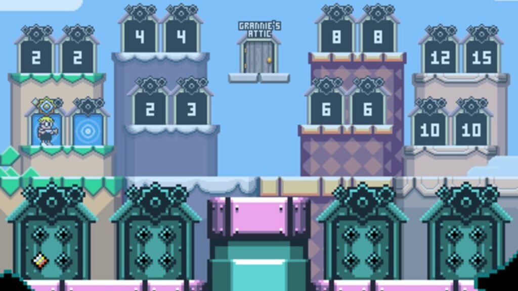 Quand vous terminez un niveau avec certaines pièces, celles-ci restent obtenues et vous n’aurez donc pas à tout reprendre lorsque vous recommencerez ce même niveau. Tout est fait pour que le jeu soit assez rapide à terminer, sans jamais vous faire de cadeau pour autant. Aussi, quelques améliorations, trois exactement, sont à activer auprès d’un marchand lorsque vous avez le nombre de pièces requises. Ces améliorations ne se cumulent pas et il faudra alors en choisir une, la bonne, avant de vous rendre dans le niveau que vous voulez « masteriser ». Vous aurez la possibilité de détruire certaines portes avec votre tir ou voler plus longtemps en jetpack : tout cela sert surtout à parvenir aux niveaux cachés. Enfin, sachez que quatre portes « finales » sont à débloquer en obtenant tous les joyaux des quatre mondes de quatre niveaux chacun. Oui, il faut suivre. Mais vous l’aurez compris : bien que certainement pas faramineuse, la durée de vie est honnête et surtout, ne se destine qu’à ceux qui aiment recommencer plusieurs fois les mêmes niveaux.