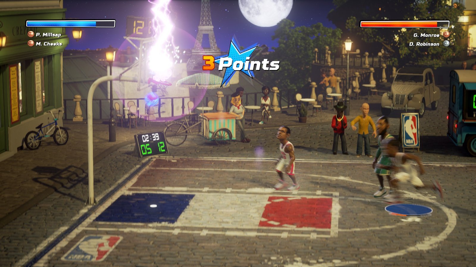 Pour ceux qui ne connaissent pas le genre, NBA Playgrounds est du basket à deux contre deux sur de petits terrains avec des règles très simplifiées . Les tirs à 3 points sont comptés, par contre n’espérez pas entendre un arbitre siffler une faute, tous les coups sont permis !