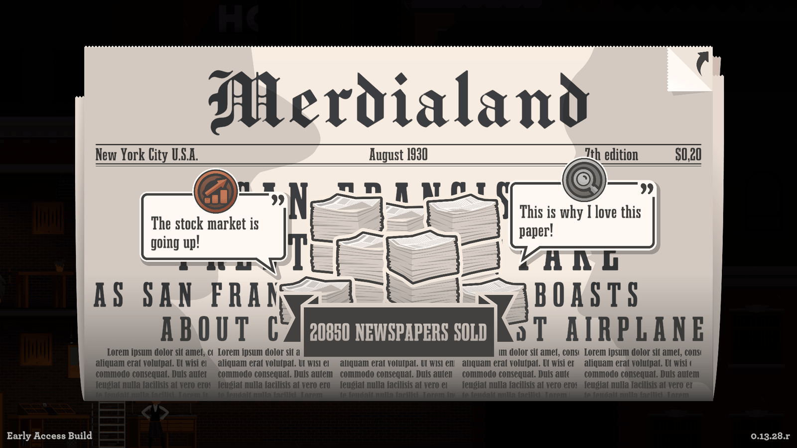 Prêt à faire éclater la vérité et chroniquer l’actualité de New York à vos concitoyens pendant les années 30 ? C’est ce que vous propose News Tower, un sympathique « journal Tycoon » en tout début d’accès anticipé développé par un studio indépendant néerlandais de quatre personnes. Alors, scoop de l’année ou gros flop ? Le moins que l’on puisse dire, c’est que les débuts sont engageants.