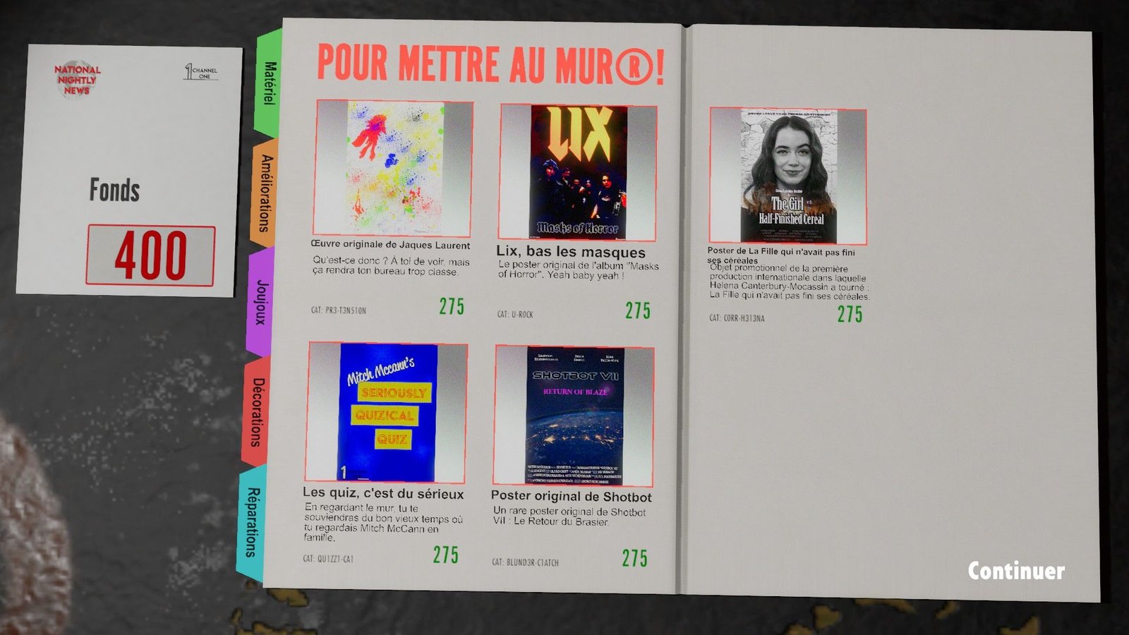 Reste que les idées sont adorables avec ce look très vieillot, voir crado par moment. L’impression de diriger un studio de télévision sans argent, coincé entre deux immeubles vétustes, dans un environnement social absolument abject, est très présent. Imaginez vous fouiller un carton de vieilles VHS poussièreuses dans une cave moite et vous aurez un peu cette impression malaisante et dérangeante, ressentie lorsqu’on met les pieds dans ce jeu à la réalisation si particulière. Ajoutez à cela une traduction française plutôt correcte et en constante amélioration.