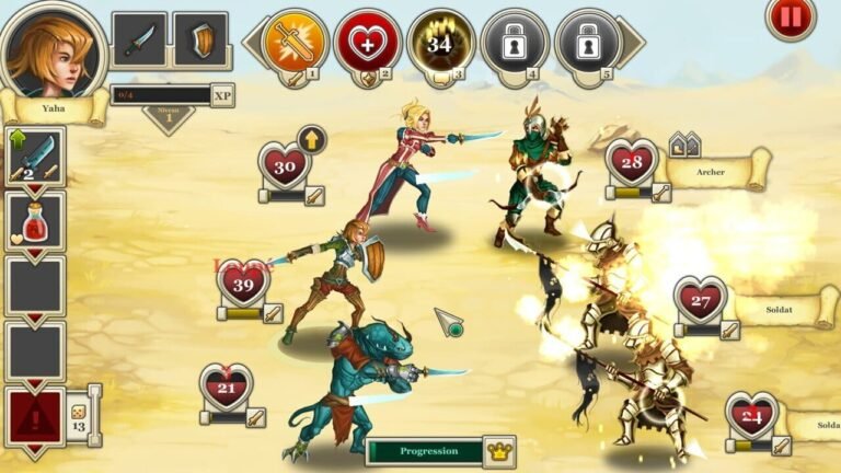 Et puis à un certain moment, à force de ne rien comprendre au gameplay, on réussit à s’y faire . On parvient à aligner deux trois coups et surtout, on se rend vite compte que les ennemis en font de même. En clair : Oddland base sa difficulté et son originalité sur un gameplay volontairement pourri. Et ça, c’est plutôt culotté ! 25 petits territoires d’un monde postapocalyptique sont à prendre pour devenir le roi de la contrée, des fermes, de boules de pailles poussées par le vent et du dessert le plus total. Seulement voilà : chaque territoire ennemi demandera un duel avec ce gameplay complètement fou dont je parlais plus tôt. Si vous réussissez à vaincre l’adversaire, à grands coups de ciblages un peu hasardeux et de bonus Bullet-Time, de medikit et de grenades/haches de lancer, alors vous prenez le territoire ainsi qu’un peu d’expérience, de l’argent et quelques cristaux. Et là commence le Pay to Win.