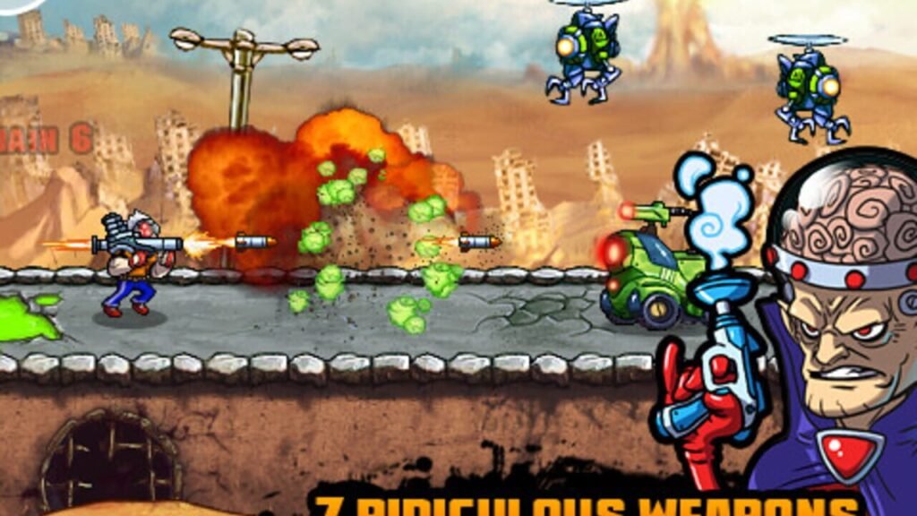 Si tant est qu’on soit un tant soit peu réceptif à l’humour si particulier pratiqué ici. Le jeu se pose en shoot en scrolling horizontal reprenant cette fabuleuse (ou non ? ) mode des « Run & Jump » . Pour simplifier : votre personnage est à gauche de l’écran et ne fais que courir. De votre côté vous ne pouvez que lui faire effectuer que deux actions : sauter et tirer. Il faut alors survivre dans des niveaux totalement générés aléatoirement, pour éviter les ennemis et les tuer, sauter sur les bonnes plateformes au bon moment et tenter de survivre à celles qui s’écroulent. C’est diabolique, mais niveau fun, très efficace. Alors bien sûr cela n’amuse pas plus de trente petites minutes (mais c’est déjà pas mal !