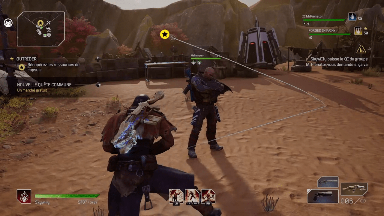 Surtout, si sa mécanique de niveaux de difficulté est complètement cassée (on espère que les développeurs parviendront à la réparer dans les semaines à venir), Outriders n’en est pas moins très généreux et amusant en tant que machine à loot. People Can Fly a fait le choix simple mais efficace de diviser les armes en habituelle rareté, mais de leur apporter des avantages très précis en fonction de cela. Une arme grise ne fait que tirer. En vert, on a un peu d’effets passifs. En bleu, elle possède des améliorations de vos pouvoirs. En violet, l’arme a carrément le droit à de gros effets élémentaires. Et en orange doré, évidemment, c’est le légendaire qui tranche nettement avec l’esthétique extrêmement quelconque de tout l’arsenal puisque ce sont les seules qui ont le droit à un design vraiment particulier. Et honnêtement, si le mauvais goût est certes souvent de la partie, on ne peut pas nier le fait que ces armures et armes légendaires sont toutes très bien liées entre elles. Il y a facilement moyen d’obtenir un personnage visuellement très différent de celui des potes qui nous suivent dans l’aventure.