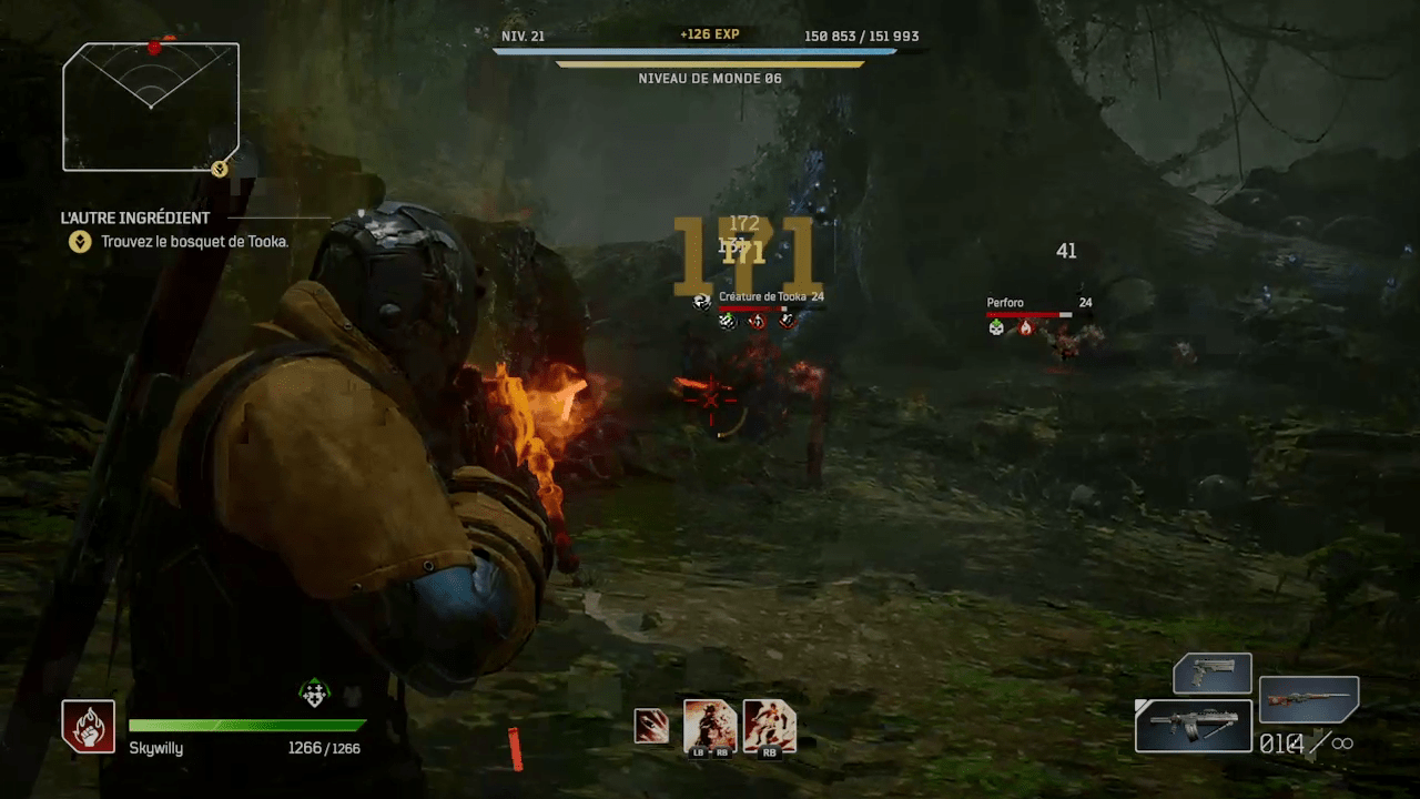 Alors il y a plusieurs techniques, très Hack & Slash dans l’âme par ailleurs. Le forcing pour commencer : on recommence une étape jusqu’à ce que l’XP obtenue entre les morts de notre personnage lui permette de mieux s’en sortir. On peut aussi acheter de l’équipement aux vendeurs des différents camps de chaque biome du jeu, ça, c’est pour les joueurs qui aiment les transactions, mais il faudra alors se passer du démantèlement des armes qui permet d’améliorer les statistiques de son équipement. Bref, les idées sont là, mais s’imbriquent un peu mal. En multijoueur, tout se passe bien mieux et de façon plus fluide, mais des passages totalement déséquilibrés seront quand même souvent de la partie, trop faciles ou trop difficiles, c’est selon la constitution de l’équipe.