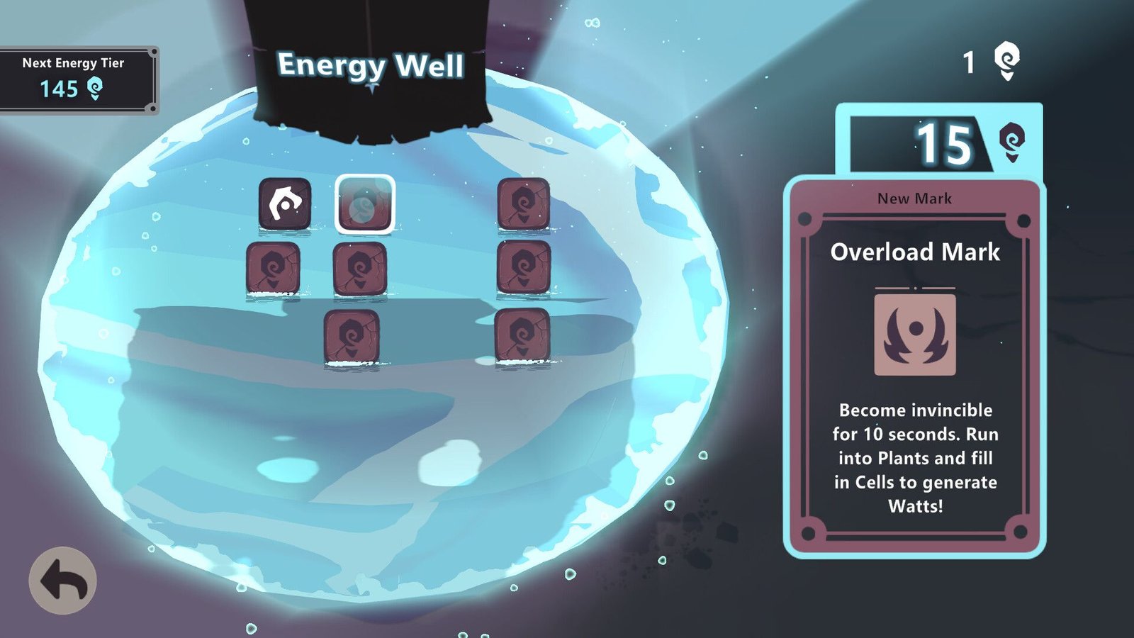 Entre deux essais vous pourrez dépenser l’électricité récoltée pour obtenir différents bonus de départ ou ajouter de nouveaux éléments qui auront une chance d’apparaître dans la centrale. Et si vous avez gagné votre précédente partie, une nouvelle espèce de plante sera également ajoutée (toutes ne sont pas belliqueuses fort heureusement).