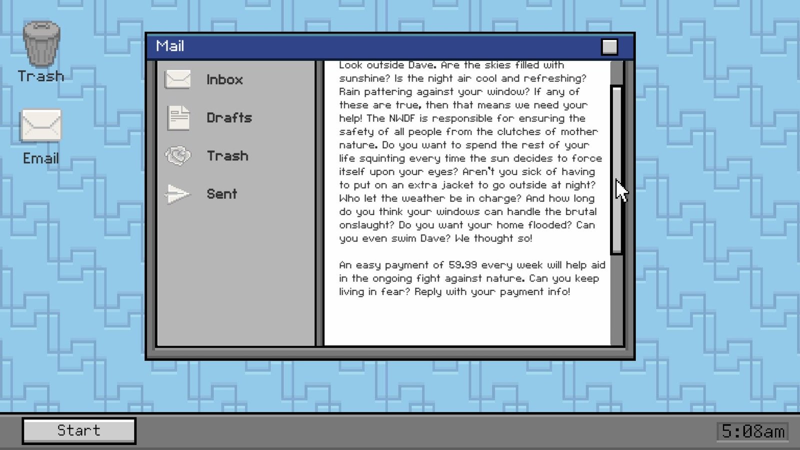 Si nombre de point&clicks nous embarquent dans des aventures grandiloquentes, comme sauver notre dulcinée des mains d’une bande de pirates sanguinaires, ou démanteler une secte ancestrale qui pratique des sacrifices humains, Pants Quest fait lui le choix de la simplicité. On y incarne seulement un trentenaire ayant perdu son pantalon, vêtement ô combien nécessaire pour sortir travailler sans risquer la garde à vue. Dès lors, notre héros va se lancer dans une quête tortueuse pour retrouver ce Graal de tissu. Problème : en l’absence de sa compagne, partie rendre visite à sa famille, la maison n’est qu’un grand capharnaüm, et le falzar reste introuvable…