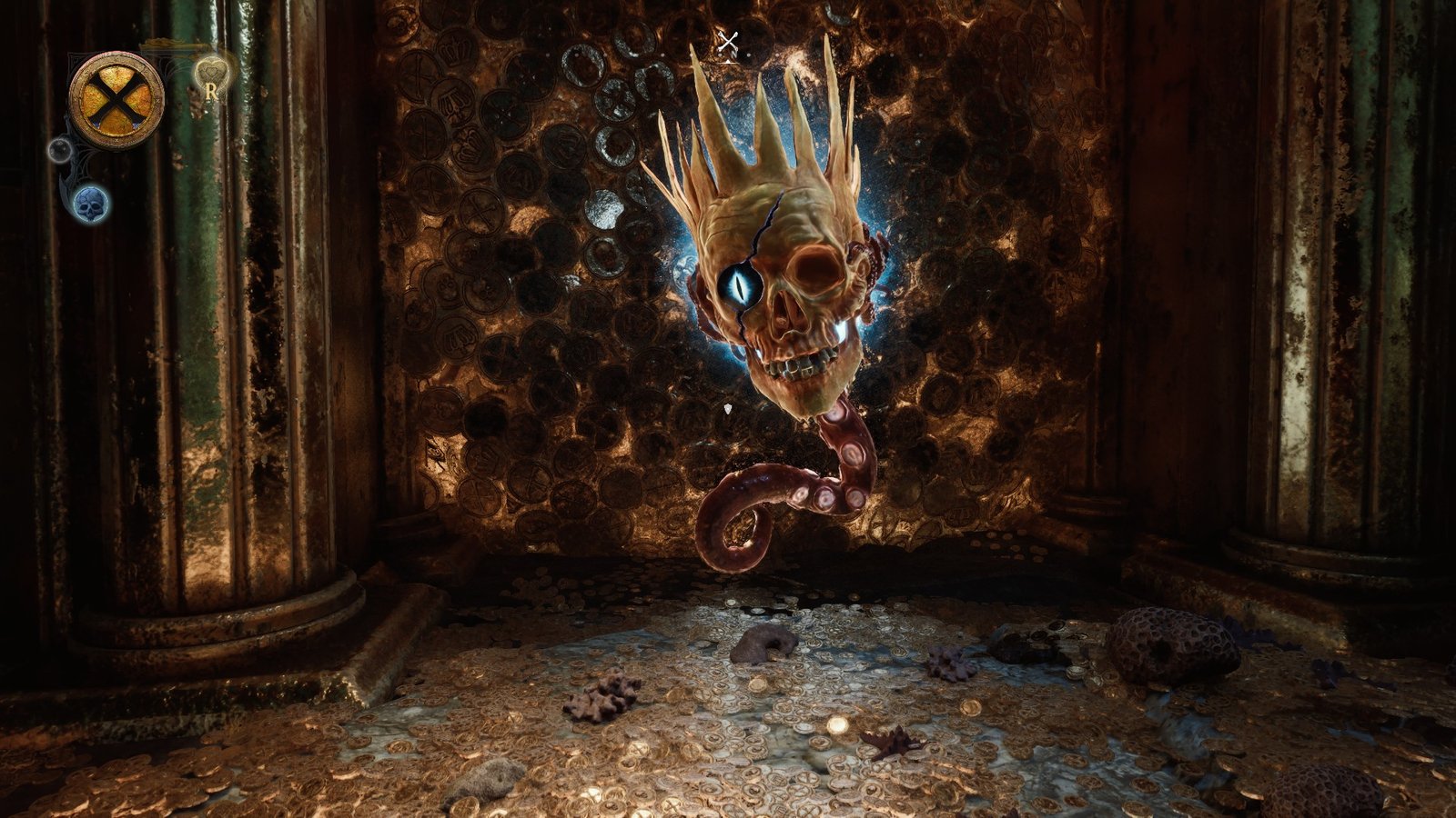 Le jeu est très bavard : tout commence avec Davy Jones, flibustier de son état, qui se fait trahir par son équipage et décapiter/noyer par Barbe Noire. Des profondeurs se révèle alors une étrange magie, faisant vivre le corps sans tête de Jones. Il va rapidement retrouver Davy, sa tête, pour préparer son ultime retour. Ce qu’il y a de très malin dans cette idée, c’est que vous bougez un corps, mais la narration se fait avec votre propre tête, sans qu’il soit défini que ce soit « vous » au sens littéral du terme. La tête et les jambes sont deux entités différentes et, si l’une est jouable, l’autre vous guide. Malin ! Cette narration n’est pas sans rappeler Mimir de God of War ou l’insupportable Dollman de Death Stranding 2, certes… et elle en partage le premier souci : il parle trop, tout le temps, souvent pour ne rien dire ou pour essayer d’être drôle.