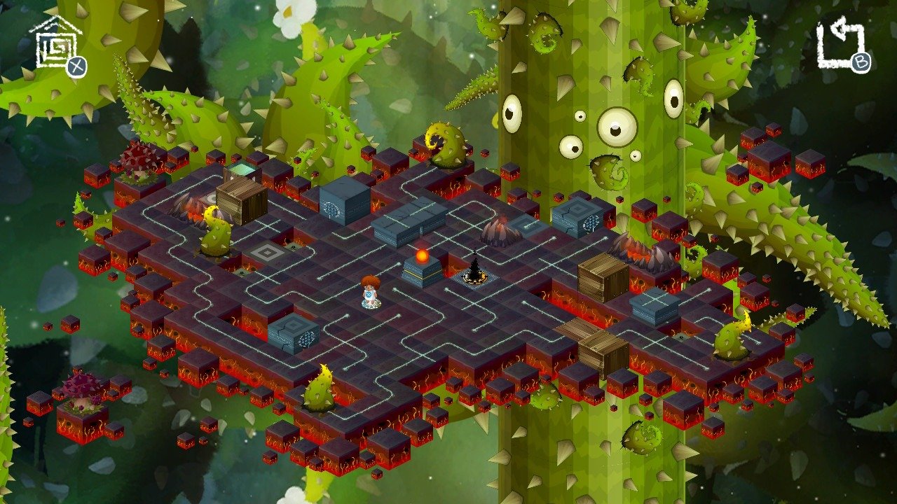 Plutôt que de faire appel à Jayce, Persephone ( dont on suppose que c’est le nom de l’héroïne ) décide de partir elle-même affronter cette vilaine ronce et sauver son prince en détresse, le tout sans désherbant. Car ici il ne sera pas question de violence ( enfin un petit peu quand même ) mais de casse-tête.