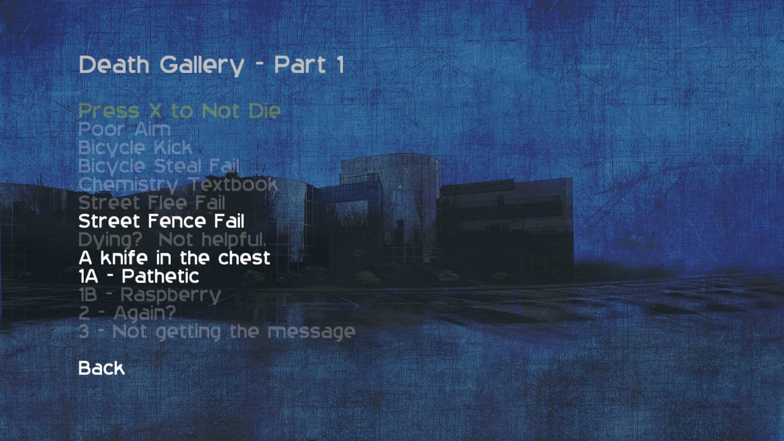 Le gameplayOu « jouabilité » en français, fait référence à la façon dont le joueur interagit avec un jeu vidéo. du jeu est très simple, il faut suivre les dialogues et réaliser les QTE qui s’affichent à l’écran. Il ne s’agit pas vraiment d’un jeu choix/conséquences comme un jeu Telltale car ici il s’agit plutôt de réussir ses QTE et vivre ou louper et mourir. De toute manière si vous mourez vous reprendrez immédiatement le jeu quelques secondes avant le QTE et vous pourrez réessayer. Le but du jeu étant aussi d’explorer les nombreuses morts grotesques dont vous pourriez faire l’expérience !