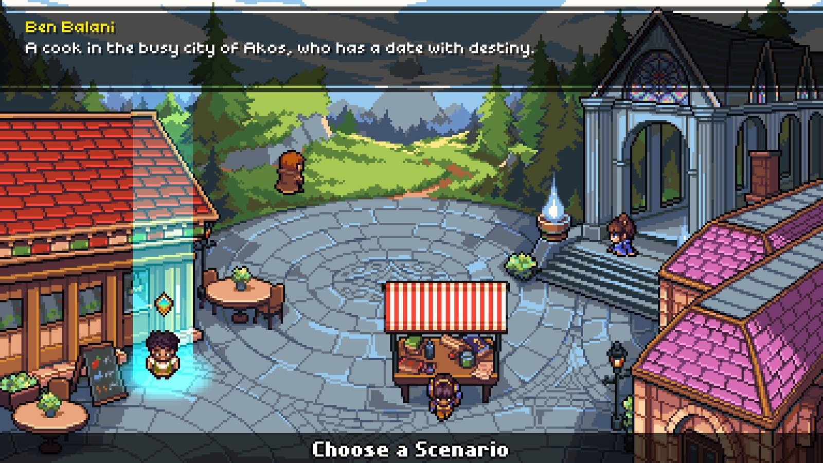 Dès son préambule, on respire à plein nez les inspirations de Quartet. Sa façon de nous présenter différents prologues à effectuer dans l’ordre que l’on souhaite, évoque la récente saga d’Octopath Traveler, et son identité visuelle — faite de sprites pixelisés très expressifs — au mythique Final Fantasy 6. C’est donc au travers de quatre chapitres introductifs, que l’on apprend à connaître nos protagonistes, vivant au sein de nations qui se distinguent par leur usage particulier de la magie.