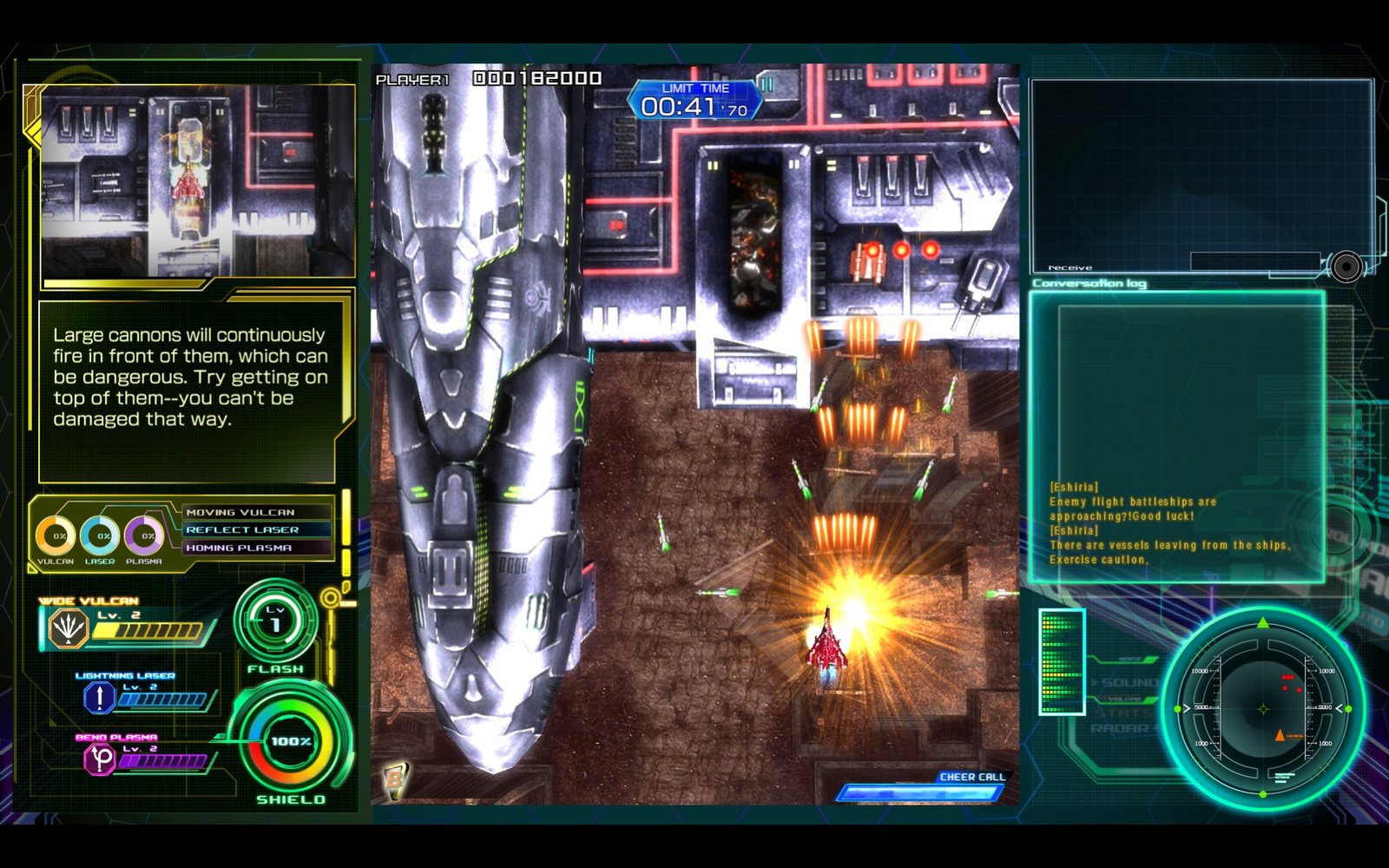 Pour une édition fêtant les 25 ans d’une licence, je trouve que c’est un ratage. Le jeu est bon, ça ne fait aucun doute, les vaisseaux sont variés, répondent parfaitement, il y a de nombreuses armes différentes, les niveaux sont longs, possèdent plusieurs variantes suivant vos prouesses, les boss sont intéressants, le rythme du jeu est parfaitement maîtrisé, etc. Mais à côté de ça plein de points noirs viennent gâcher l’ensemble. Graphiquement ce n’est pas terrible, la lisibilité est parfois très discutable, l’aire de jeu déjà bien réduite est envahie par les dialogues ininterrompus entre les PNJs et les notifications de succès, les options graphiques sont réduites au minimum et les périphériques sont mal gérés. C’est dommage, tous ces problèmes font passer Raiden V de bon jeu à sympa sans plus que je ne peux décemment conseiller qu’aux amateurs de shmup qui arriveront à passer outre l’enrobage médiocre pour s’essayer au scoring et au boss mission mode.