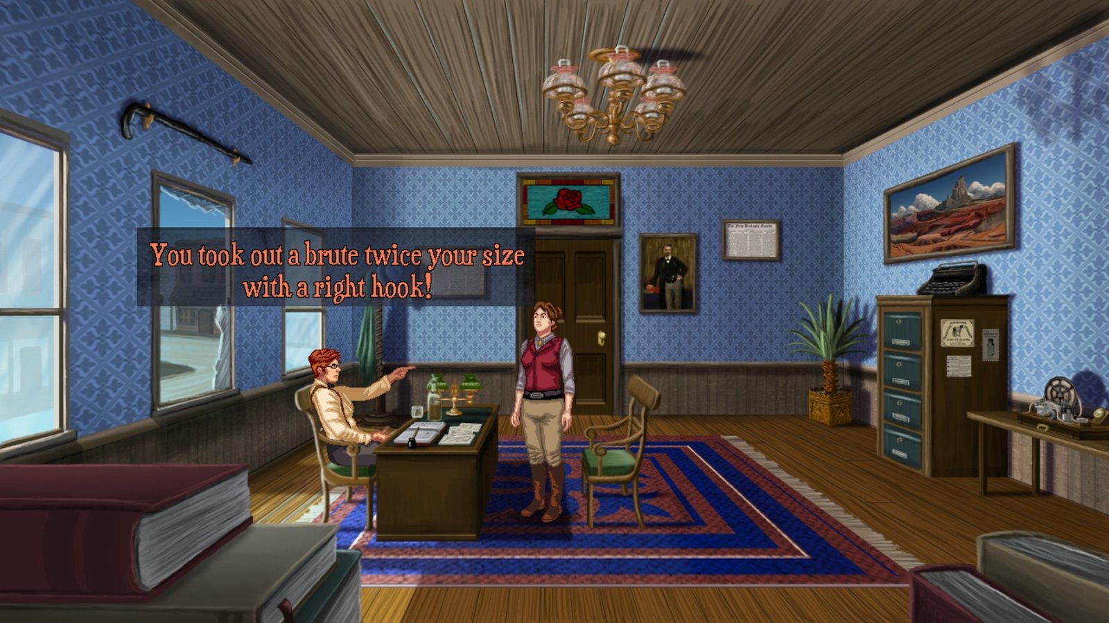 Francisco Gonzales, l’homme derrière le studio indé de Grundislave Games, n’est pas un novice lorsqu’il s’agit d’élaborer un point&click. Effectivement, le monsieur est déjà connu pour quelques faits d’armes : A Golden Wake, Shardlight et Lamplight City, rien que ça. C’est d’ailleurs dans l’univers de ce dernier opus que se déroule Rosewater , son futur bébé encore en phase de gestation. Mais exit l’ambiance british et victorienne de la ville fictive de Lamplight, et bonjour au western spaghetti, ses gueules cassées, ses diligences et sa ruée vers l’or porteuse d’espoirs déraisonnables. C’est dans une version démo riquiqui, pouvant se boucler facilement en vingt minutes, que Rosewater s’offre à nous. L’occasion de prendre la température de son potentiel, mais juste à l’aide de la dernière phalange de l’auriculaire.