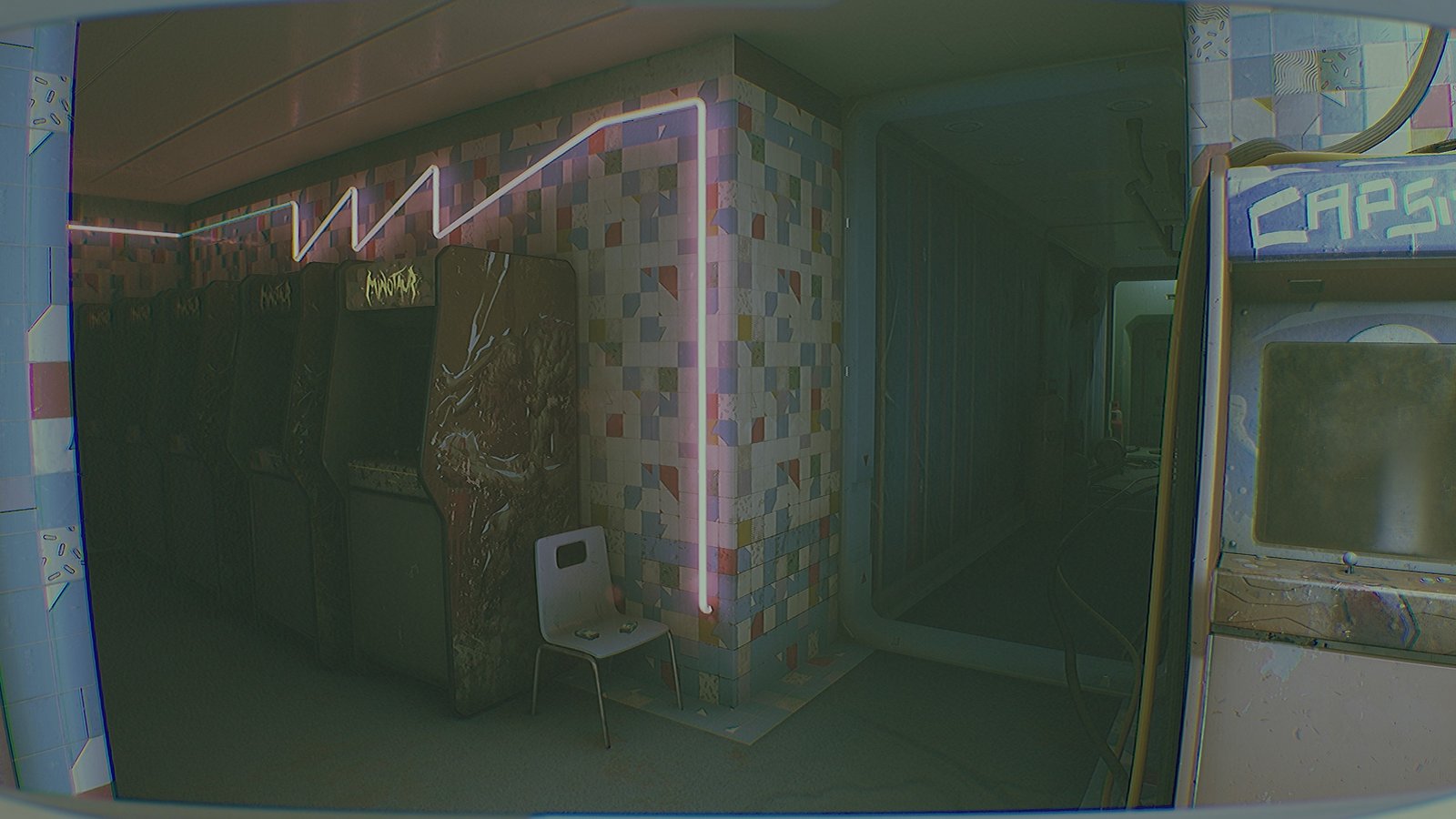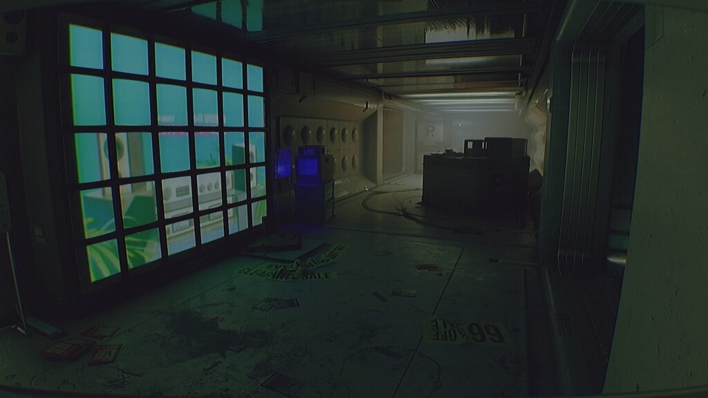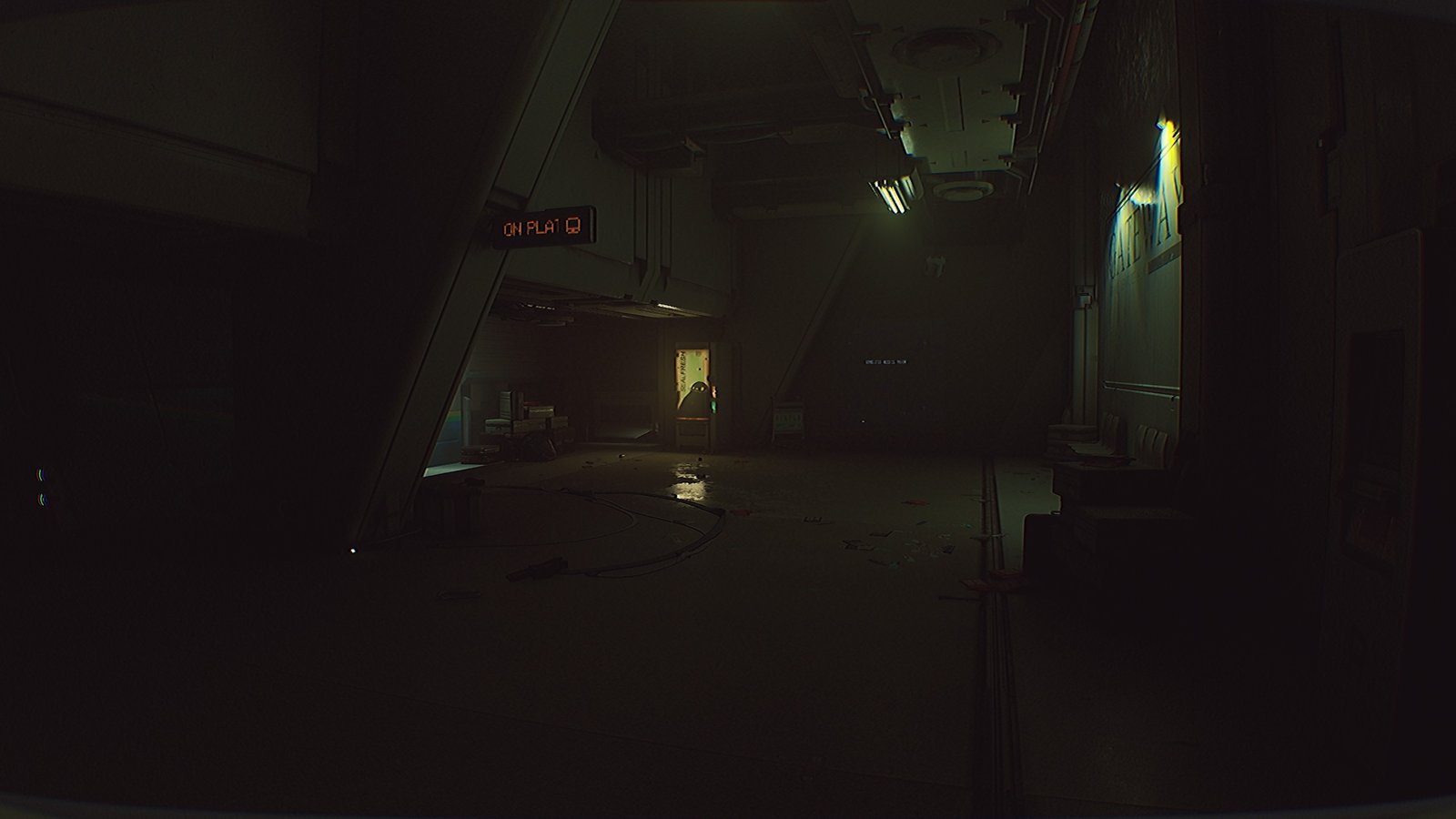 Toute cette surcouche d’immersion est surtout là pour vivre à pleine balle votre voyage au sein de la station Prisme, qui, comme dit plus haut, est abandonnée et vous devez comprendre pourquoi. Si les premières minutes sont plutôt calmes, sans jamais croiser personne (à part cet adorable robot d’accueil), petit à petit le jeu va commencer à empiler les angoisses. L’exploration commence par la partie accueil des visiteurs puis, celle des résidences, avant de nous faire aller dans les endroits les plus sombres et abimés. L’éclairage baisse, les couloirs rapetissent et les menaces commencent à poindre le bout de leur nez. Les premiers étant ceux qu’on voit sur les trailers, des robots de sécurité qui se sont mis en « seek and destroy » et vous courront après. Fort heureusement, seul un robot peut être actif à la fois et vous pouvez les immobiliser en tirant sur la poitrine avec le taser. Mais souvenez-vous, le viseur est un écran cathodique de basse résolution, autant vous dire qu’il va falloir attendre au dernier moment pour être précis. C’est un peu effrayant mais il n’est rien par rapport à la suite et je n’en dirai pas plus pour éviter de divulgâcher (dites-vous juste que l’autre moitié du jeu a fait en sorte qu’un bruit particulier déclenche instinctivement des frissons dans mon dos).