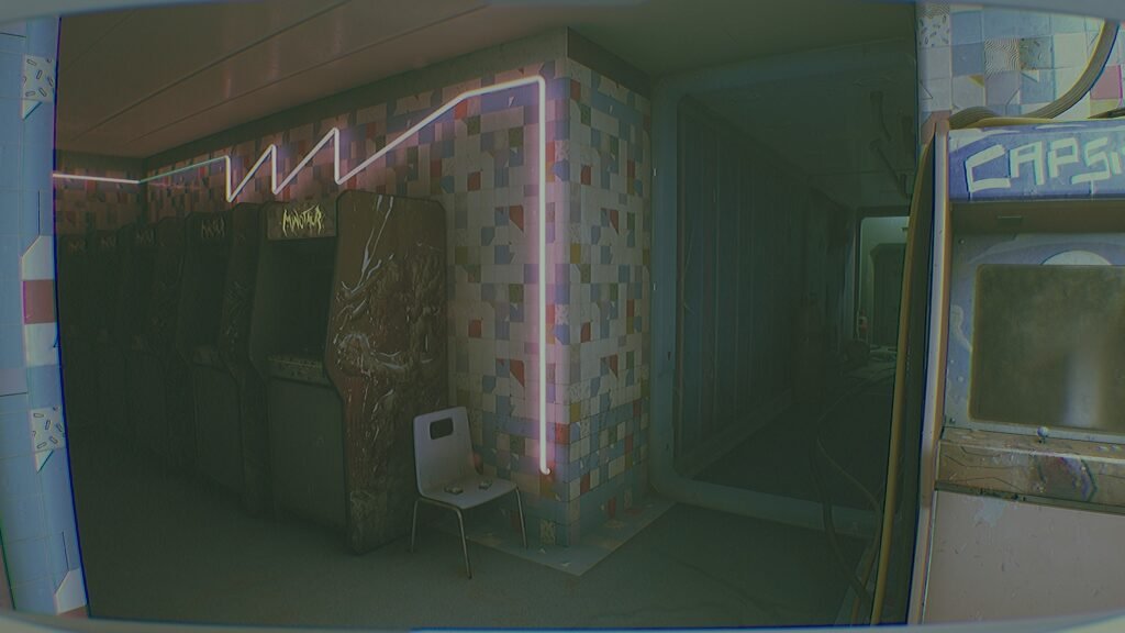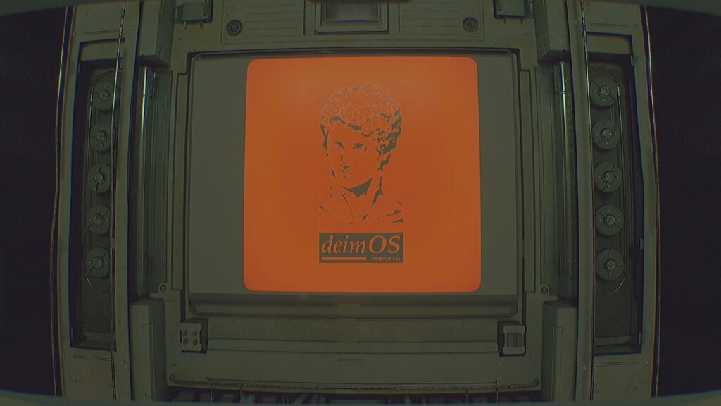 Alors on avance, à tâtons, on n’entend ni ne voit strictement personne mais on ne peut pas s’empêcher de continuer de retenir son souffle dans les couloirs. On finit par se détendre un peu et surtout on comprend que pour avancer, il va falloir fouiller. Lire les mails et les papiers laissés à droite à gauche et surtout, mettre la main sur le C.A.T. (Cosmonaut Assistance Tool). Un pistolet qui peut faire office de taser mais aussi de lampe torche, de viseur UV, d’appareil photo ou de passe-droit. Un multi-outils singulier qui a la particularité surprenante d’avoir un écran pour viseur. Mais cet écran, il est limité, notamment parce qu’on est quelque part dans les années 80 et qu’à l’époque, un si petit écran dans un si petit outil, c’est une prouesse, qu’importe que sa résolution soit de 144p et qu’il affiche 5 images par seconde. Ses différents modules (on ne peut en activer qu’un à la fois) permettront parfois d’avoir un meilleur affichage, mais au détriment d’autres choses, et surtout, la technologie cathodique est très sensible aux aimants, il faudra donc parfois lui refaire une calibration si vous voulez avoir une image « nette » (les habitués de vieux oscilloscopes sauront de quoi on parle).