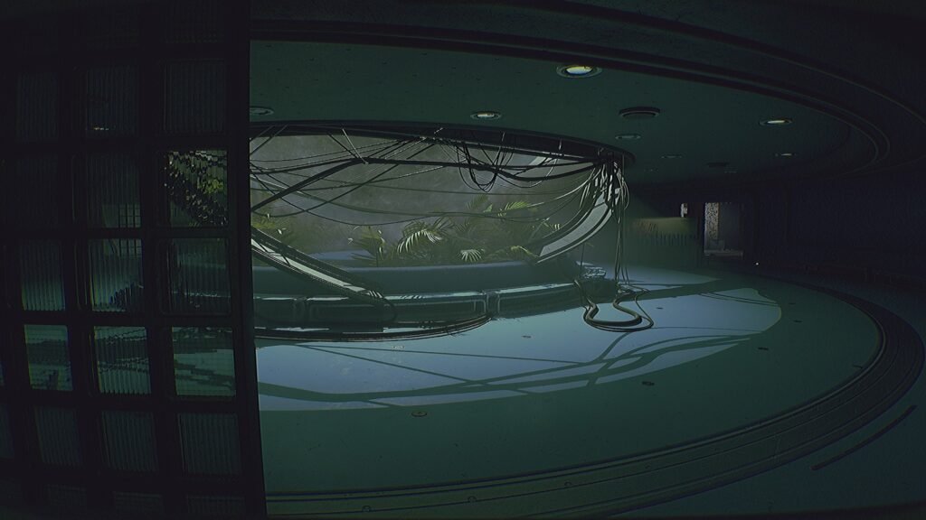 C’est là toute l’incroyable précision avec laquelle Routine nous est présenté. Le rythme est absolument maitrisé, il alterne les menaces et les énigmes (pas toujours simples à comprendre, il faut bien lire). Parfois même les deux en même temps, Heureusement, on peut se défendre (un peu) mais on reste une proie face au danger. Le pire ennemi de votre sang froid sera avant tout l’ambiance sonore générale, exécutée avec brio par Nathaniel-Jorden Apostol et un certain Mick Gordon (voir intermède plus bas). Le résultat donne quelque chose de très analogique et compressé à outrance. Tous les objets qui font du bruit sonnent comme quelque chose de familier et en même temps d’irréel, c’est comme rebrancher un minitel aujourd’hui (avec le haut-parleur au bout de sa vie). Mais surtout, tout sonne très fort dans le jeu. Les sons résonnent au loin, et nous écrasent de près, les champs magnétiques que l’on traverse par moment bourdonnent et nous déglinguent les oreilles, les robots font des bruits atroces et aigus, etc. Chaque son créé est unique et d’une justesse qui force le respect, et je me devais d’en parler dignement (et ça me fait un peu penser au taff qui a été fait sur Arc Raiders et je vous renvoie à cette vidéo qui parle des sons de mauvaise qualité qui sonnent bien).