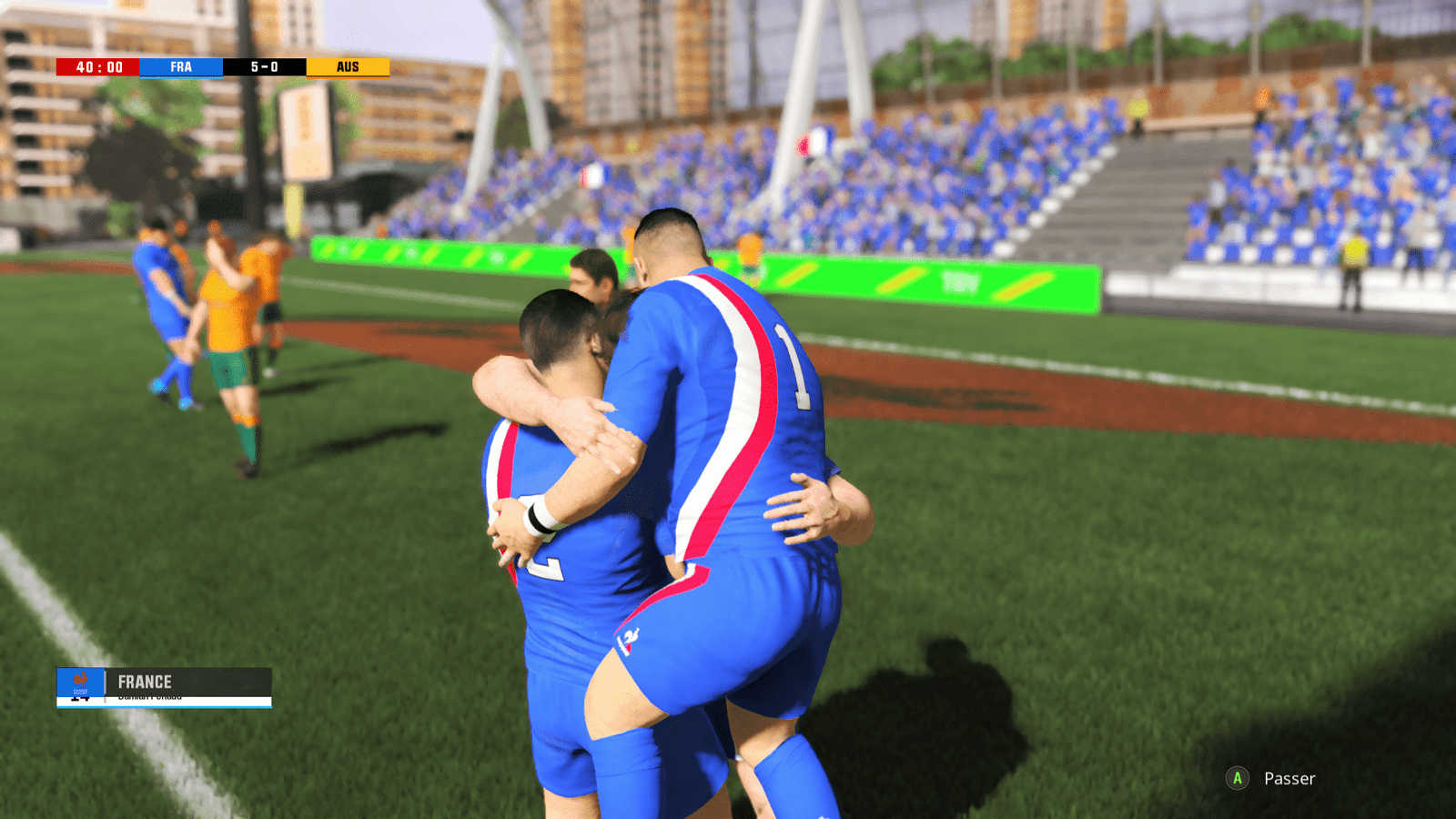 D’ailleurs, il faut aussi être parfaitement à l’aise avec tous les boutons d’une manette moderne, tant ils sont souvent sollicités – et de manière différente selon les phases de jeu – que vous soyez en défense, en attaque, en train de préparer un coup de pied ou d’essayer de lancer une combinaison. En plus d’être connaisseur, il faut être un joueur de jeux vidéo de sports collectifs plutôt aguerri pour mémoriser tout le bazar – presque conçu comme des mini-jeux liés entre eux par le mouvement du ballon -, et se souvenir qu’une mêlée fermée ça ne se joue pas comme une mêlée ouverte. Oui, je sais, les termes du rugby c’est l’enfer et tout le monde se fâche tout le temps car on fait semblant d’y piger quelque chose depuis plus d’un siècle, mais bon ya de la bagarre, ça suffit à la plupart des gens.