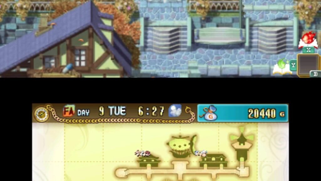 En effet, outre son début fort classique où vous incarnez un héros ( ou une héroïne, vous avez le choix du sexe ) qui en portant un trésor tombe sur des méchants, perd la bataille, tombe du ciel à travers les nuages et, quel heureux présage, s’en sort vivant et amnésique ( ouaiiiiis pas de backgroud de personnage à écrire ! ) dans une petite ville pacifique qui le recueille. Oh et au passage il en devient le prince par hasard aussi. Jusque là rien que de très normal et fort quotidien mais là où le jeu surprend c’est que vous ne débarquez pas prêt à aller vous battre contre des monstres direct . Nan là vous arrivez dans un monde un peu comme vous arrivez dans Animal Crossing, tout le monde est votre copain, tout le monde vous attribue une responsabilité innée, tout le monde est là pour vous aider. Et le premier truc que vous allez kiffer faire c’est du jardinage. Oui, du jardinage.