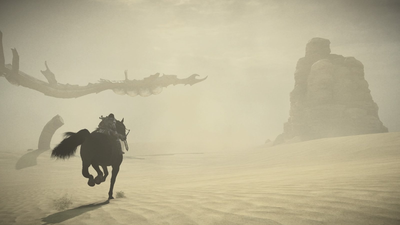 A pied, on peut sauter, frapper à l’épée, tirer à l’arc. A cheval, il suffit de laisser appuyé le bouton Triangle pour faire avancer Agro de façon automatique. Le cheval vous guidera à votre prochain Colosse avec l’aide des caméras qui, du coup, vous joueront beaucoup de tours lorsque vous déciderez de faire ce que vous voulez et de ne pas suivre le chemin décidé par le jeu. Pas grave : les panoramas merveilleux ont là pour donner du baume au cœur entre deux rages de gameplays imprécis et vieillots.