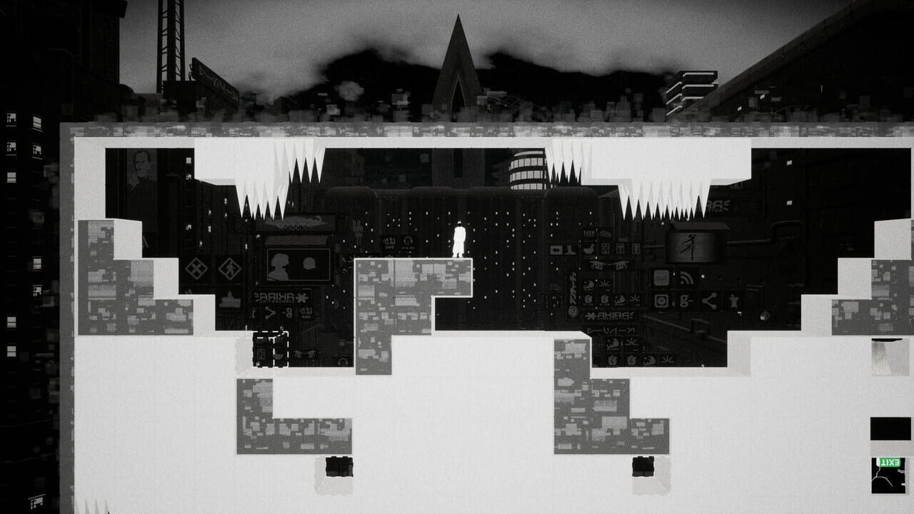 Loin d’être totalement original (il ne l’est jamais vraiment), Shift Quantum propose un gameplayOu « jouabilité » en français, fait référence à la façon dont le joueur interagit avec un jeu vidéo. de passage d’un monde noir à un monde blanc et vice-versa, qu’il me sera bien plus simple de vous expliquer via la vidéo ci-dessous. Sachez juste que c’est ainsi que vous passerez d’un point à l’autre de votre petite, moyenne ou grande aire de jeu (c’est selon les niveaux et le bon vouloir des level designer) dans le but principal d’atteindre la sortie et optionnel de collecter le petit Glitch qui s’y cache.