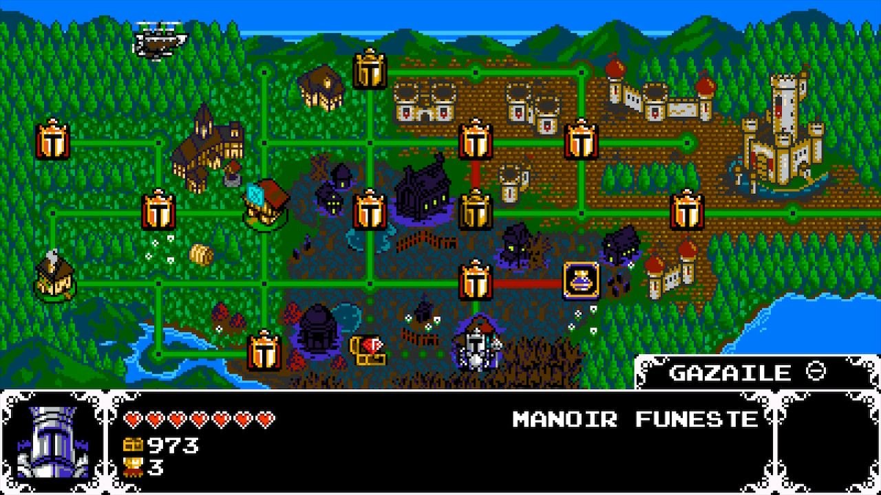 Après un kickstarter réussi (ça commence à devenir une habitude en début de mes tests, ça) Shovel Knight fut lancé en 2014, une lettre d’amour aux jeux de plateforme 8 bits, Mega Man et Castlevania en tête avec des mécaniques à la Soulsborne, des musiques de Jake Kaufman et Manami Matsumae. A la clef un succès assez énorme, et surtout un respect total de la fanbase et des promesses du kickstarter, même si les talentueux programmeurs de Yacht Club Games ont mis plus de cinq ans à tout finir. En effet, le jeu de base s’est enrichi petit à petit pour devenir la compilation Treasure Trove contenant l’intégralité de ce qui est disponible dans l’univers, mais il est tout à fait possible d’acheter uniquement ce qui nous intéresse, et voici donc venir la dernière aventure solo dans cette franchise.