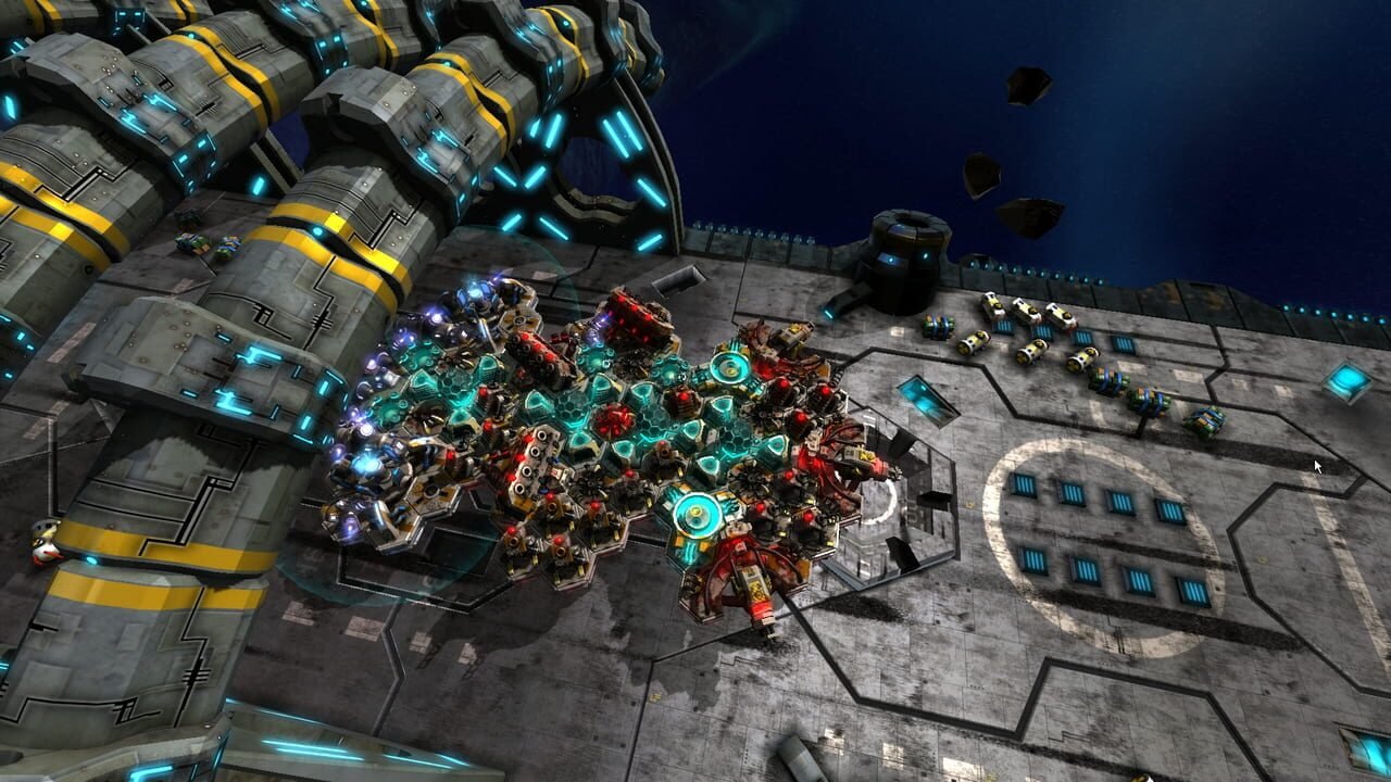 Il faut dire que Space Run a un postulat de base plutôt alléchant. Vous êtes un ancien soldat devenu livreur des temps modernes dans un espace infini mais très correctement balisé par tout un tas de mega-corporations qui s’échangent des biens. Vous devrez transporter des colis aussi dangereux que des sources d’énergie nucléaire, mais aussi quelques bric-à-brac classiques. Vous posez cela sur votre vaisseau, constitué de plusieurs hexagones. Chaque colis demande un certain nombre d’hexagones pour être transporté et avant de se lancer dans la mission, vous devrez choisir ou poser votre matériel. Un conseil, posez le tout au centre, loin des tirs ennemis. À chaque niveau votre vaisseau s’améliore en taille et donc, en contenu. Une fois la mission lancée, vous n’avez que les objets que vous devez livrer et un réacteur pour avancer. Très vite, avant qu’une vague ennemie n’arrive, vous devrez dépenser vos quelques deniers de début de mission dans la création de tourelles d’attaque que vous poserez elles-aussi sur un hexagone chacune. Vous débloquerez rapidement des lance-missiles, des canons à ions désactivant les ennemis et leurs tirs meurtriers, mais aussi des générateurs de boucliers, etc. Rapidement, vous constituez alors votre vaisseau avec les tourelles que vous y disposez, contre les finances que vous récolter en passant la souris sur les boulons qui reste des épaves de vos ennemis affrontés et battus. Sur une entière ligne droite, Space Run vous demande donc d’arriver le plus vite au point de livraison. Pour se faire vous pouvez aussi ajouter, moyennant finances toujours, des réacteurs prenant eux-aussi un hexagone en termes de place : ils sont obligatoirement disposés de manière à pouvoir souffler vers l’arrière du vaisseau, évidemment. Plus vous irez vite, plus vous rencontrerez rapidement les vagues ennemies (et vous aurez donc moins de temps pour vous y préparer) mais se rendre au point final très rapidement permet de terminer quelques objectifs secondaires faisant glaner une jolie somme d’argent.