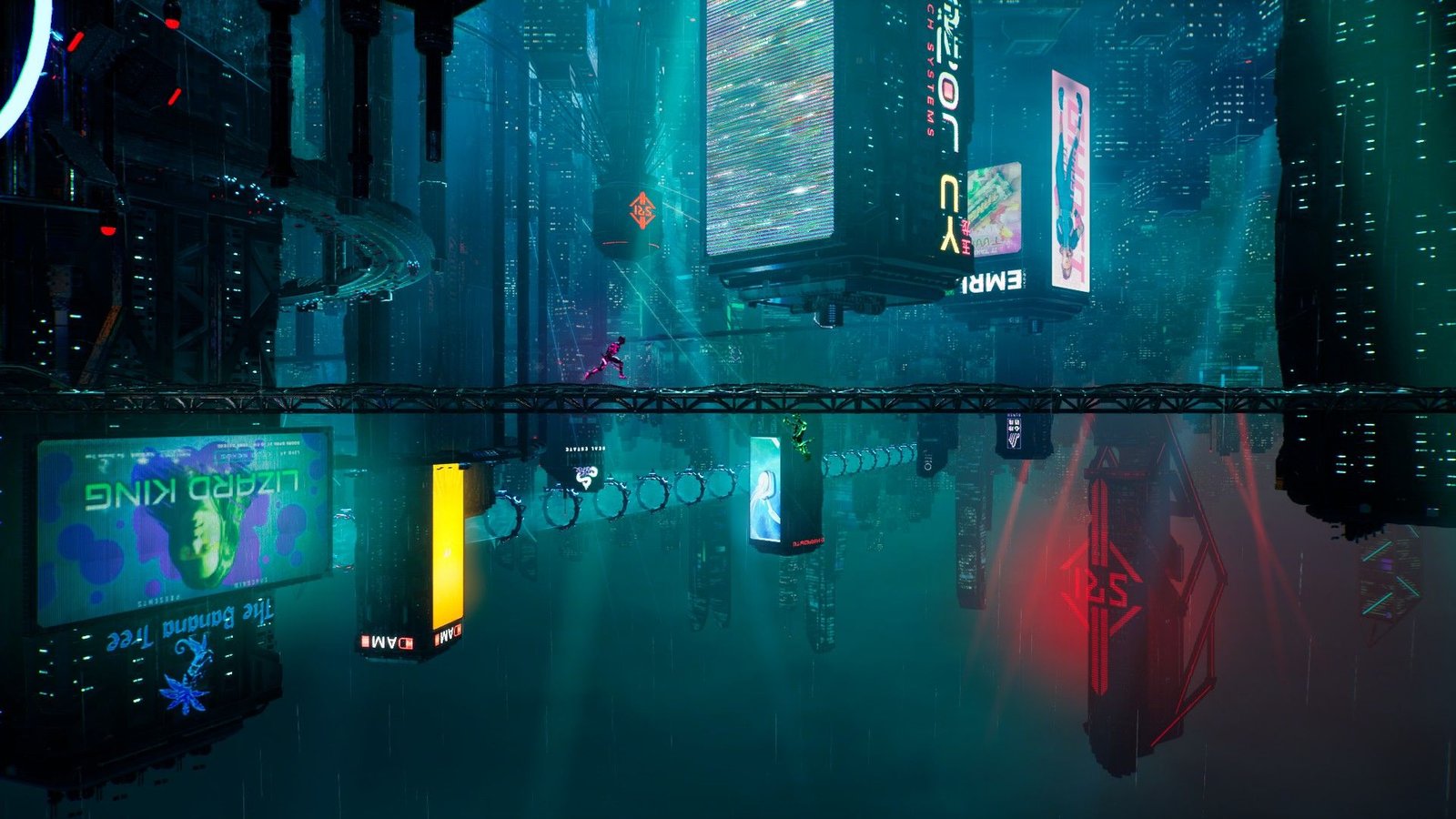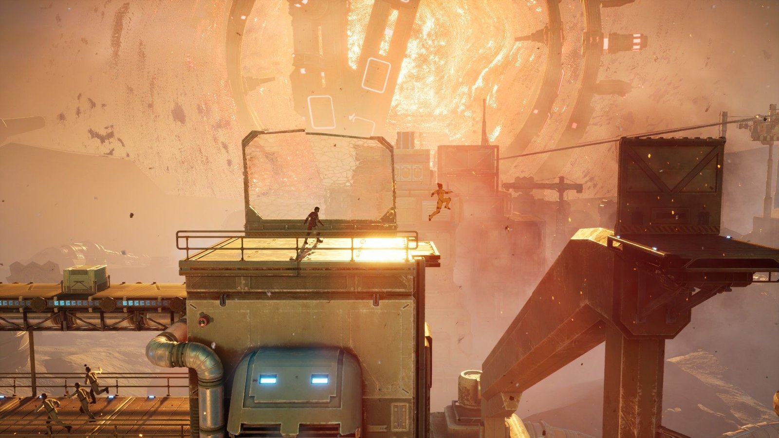 Et l’on n’incarne pas que Zoé et Mio, celles-ci prennent aussi parfois d’autres formes que j’éviterai de spoiler ici, mais qui ne sont pas dénuées d’humour. De petites touches décalées viennent d’ailleurs régulièrement nous faire sourire. Il y a quelques gros délires. Même au niveau de la forme, cela varie. Si le jeu est essentiellement en 3D, il passe aussi quelques fois en 2D, en scroll horizontal, comme en vue du dessus, voire même en 3D isométrique. Mais dans tous les cas, cela reste sublime et toujours très fluide et bien animé. Si l’on rajoute, en plus, une mise en scène particulièrement soignée et efficace, un doublage français de très haute qualité et une magnifique bande-son, sachant alterner les thématiques SF et fantasy avec brio, il y a de quoi s’extasier. Il y a bien une cinématique dans laquelle l’animation labiale des interlocuteurs avec lesquels Rader discute en visio est absente, mais c’est vraiment un détail. Le seul bémol que je peux émettre réside dans les quelques crashs rencontrés en jouant en ligne, mais le jeu se relance très rapidement et nous repositionne à l’endroit où cela s’est arrêté, où très proche.