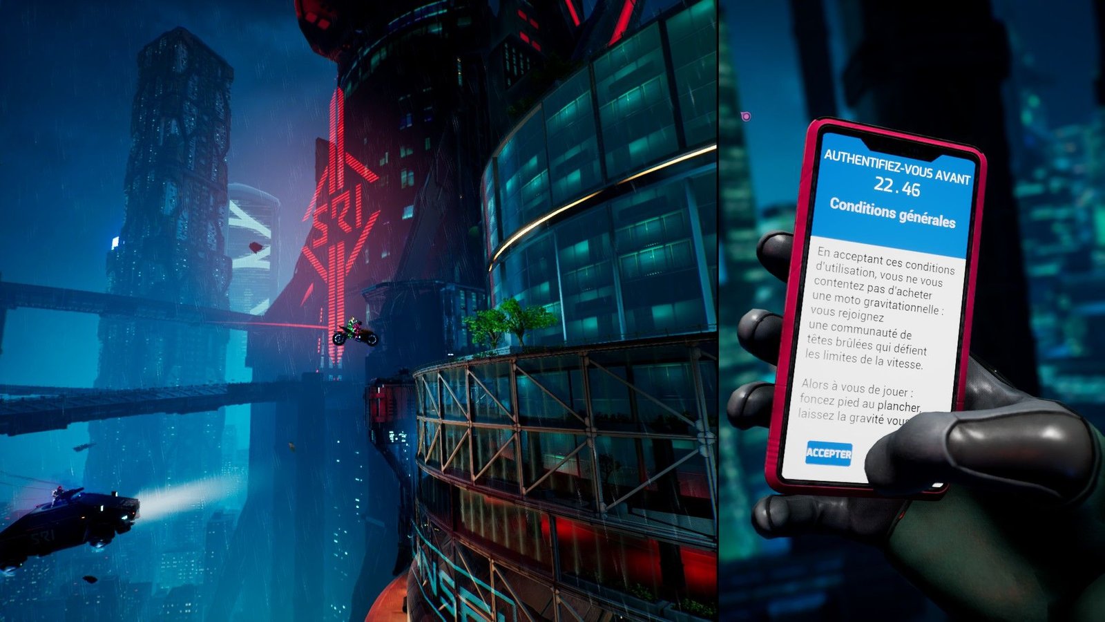 L’aventure proposée par Josef Fares est encore une fois palpitante. C’est spectaculaire et, en dehors des cinématiques, cela ne s’arrête jamais, jusqu’à l’aboutissement dans un dernier chapitre épique et complètement fou. Faisant preuve d’énormément de créativité, avec des idées à la pelle, le titre varie en permanence son gameplayOu « jouabilité » en français, fait référence à la façon dont le joueur interagit avec un jeu vidéo. de manière magistrale et particulièrement efficace, sans jamais se répéter. Il s’agit bien entendu surtout d’un jeu de plateforme, avec des énigmes à résoudre pour tracer son chemin, mais pas que, loin s’en faut. Il y a divers mécanismes à exploiter, parfois en les piratant, mais aussi des combats, du shoot’em’up, et de nombreuses courses poursuites, que ce soit à pied, à moto, en voiture volante, à dos de dragon, en skateboard ou en hover board, en ski nautique, en jet ski… Il y a même des passages où l’on joue avec la gravité, d’autres en chute libre, ou encore avec un jetpack, sous l’eau, et j’en passe.