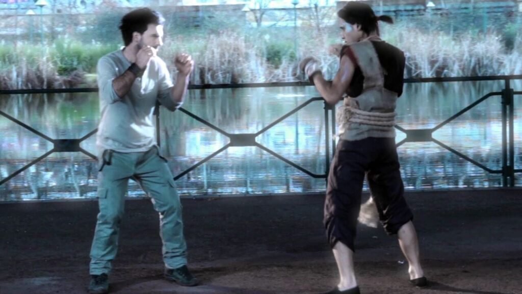 Un jeu de combat ou un film violent interactif ? Après le succès d’Heavy Rain, les créateurs se sont souvenus de l’ère du Mega-CD et tentent de proposer un jeu/film de baston de rue tout en HD… De la baston photoréaliste ! Forcément, en lançant le jeu, on ne peut pas s’empêcher d’esquisser un sourire devant le casting proposé. Un groupe italien de passionnés de combats de rue se sont réunis pour créer ce « jeu », Stay Dead, dont le concept est on ne peut plus simple : proposer de vraies scènes d’affrontements, filmées avec une certaine maitrise de la caméra, tout cela mis en scène de façon logique en parallèle à la maitrise du gameplayOu « jouabilité » en français, fait référence à la façon dont le joueur interagit avec un jeu vidéo. par le joueur. Doté d’une très belle réalisation, nette et aux filtres plutôt sympathiques, Stay Dead n’en est pas moins terriblement amateur. Les coups ne sont évidemment pas réellement donnés, mais sonnent pourtant bien, néanmoins c’est surtout du côté du jeu d’acteur que tout n’est pas parfait. Une demi-dizaine de « charismatiques » ennemis à affronter sont proposés. Cela passe de la « rebelle » au cliché du gros baraqué, en passant par le soldat nazi aux pouvoirs étonnants.