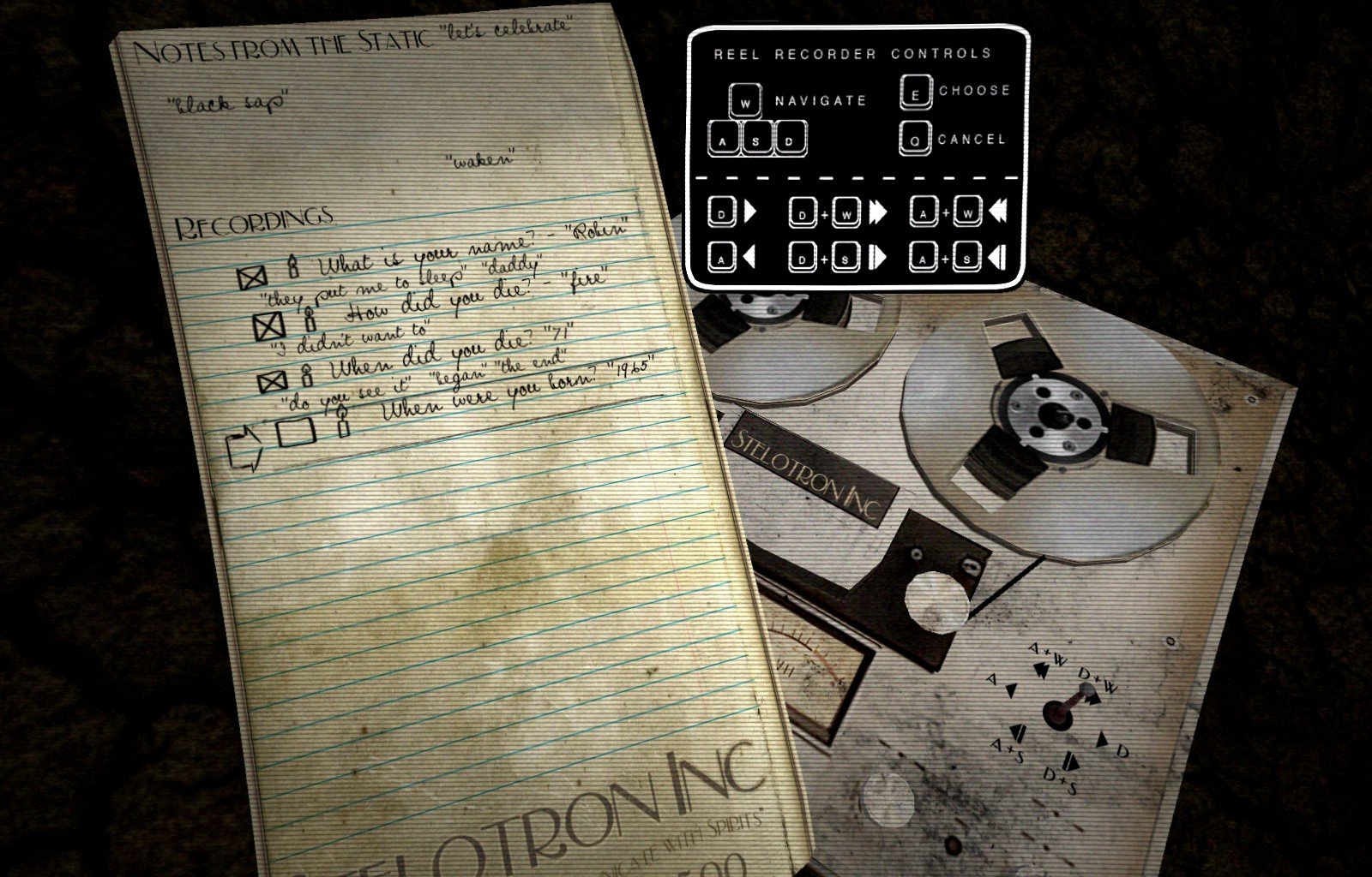 J’en viens donc à l’un des défauts du jeu, le manque de sous-titres . Pas de sous-titres français, d’accord, on a l’habitude avec les jeux indépendants, ça se comprend mais pas de sous-titres anglais non plus. Autant vous dire que comprendre la voix de Juliette et celle de Bobby sur ces vieux enregistrements demande un très bon niveau d’anglais. Heureusement que les mots analysés en écoutant les voix des morts sont notés sur un carnet.
