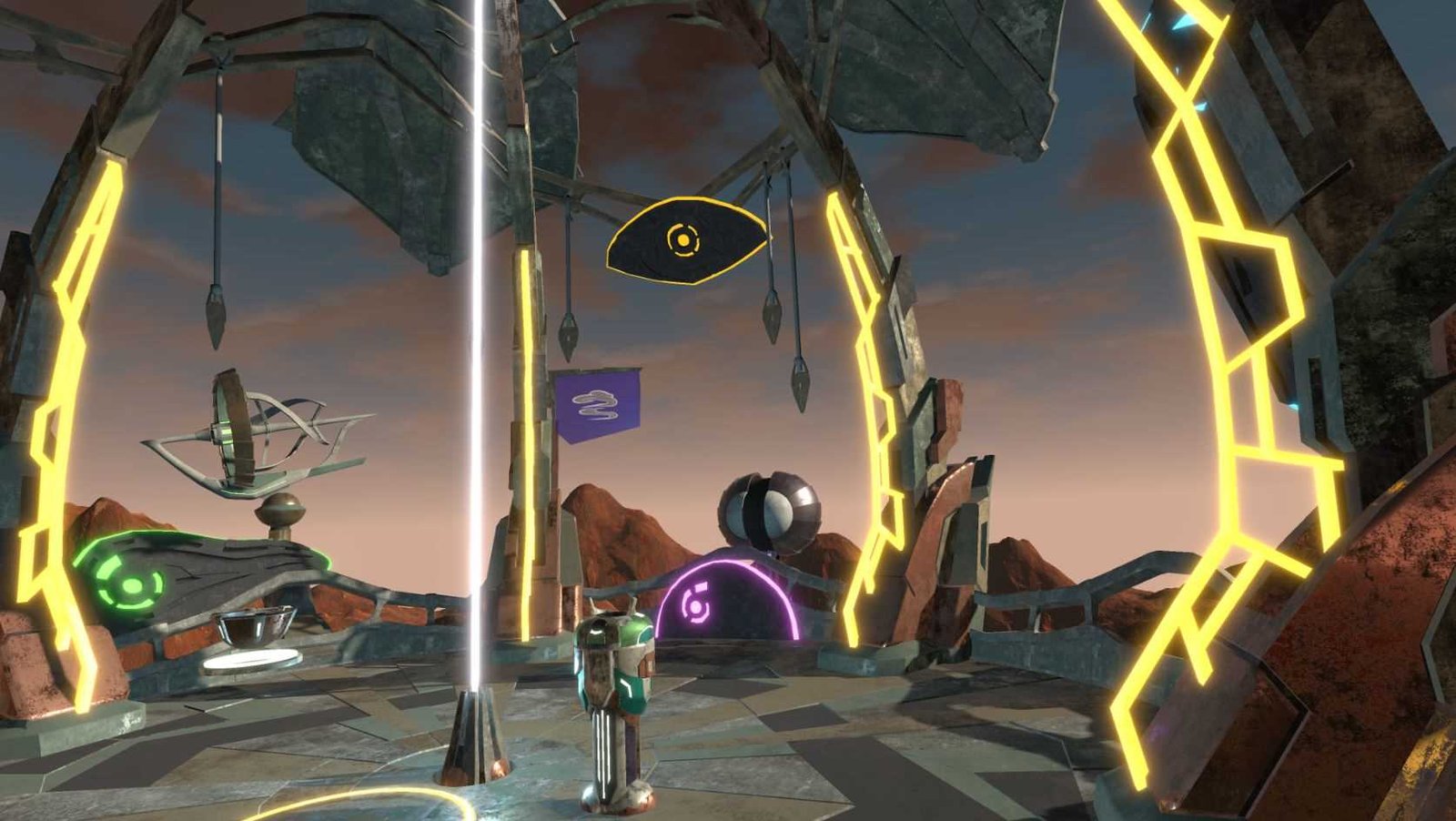 Cette dernière position pouvant se trouver de l’autre côté de la plateforme. Voilà qui, en plus d’être exaspérant, vient multiplier les mouvements, qui souffrent naturellement de leur manque de précision : puisqu’ils se basent sur un endroit cible désigné, il arrive fréquemment qu’une fois le déplacement effectué, on se rende compte qu’on n’est pas placé exactement comme il aurait fallu. Il faut alors se déplacer à nouveau pour ajuster sa position. La complexité du déplacement s’allie donc à une mécanique de jeu obligeant à être bien placé pour manipuler des objets entrant en interaction avec les rayons de la machine. Le tout devant en plus subir les caprices techniques d’un tracking bancal, on en vient rapidement à pester contre le jeu, qui ne parvient plus dès lors à tenir sa promesse de calme zen .