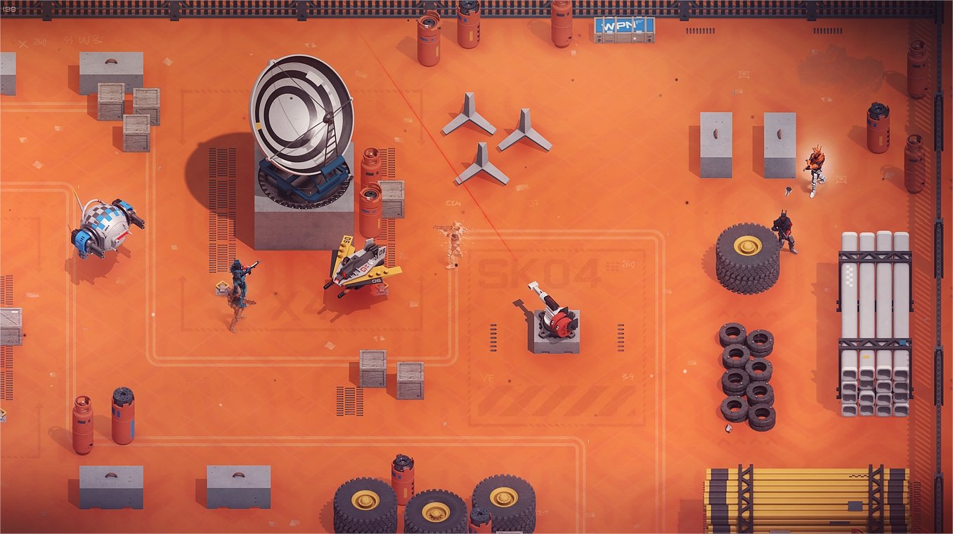 Le but de chaque niveau est assez simple, éliminer tous les robots et assimilés croisés et atteindre la zone d’extraction. Évidemment, de temps en temps un boss fera son apparition pour vous barrer la route et si je vous ai dit que de base Synthetik met la barre assez haute niveau difficulté, les boss sont vraiment monstrueux et il vous faudra probablement de nombreux essais avant de comprendre les stratégies à adopter contre chacun d’eux.