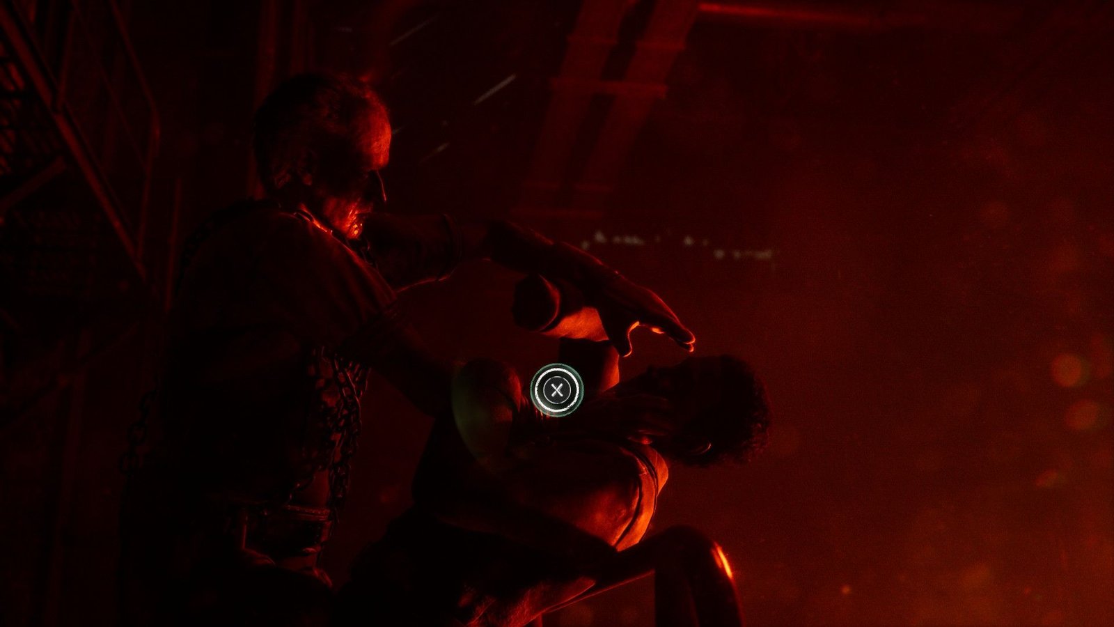 Bien entendu, les conséquences les plus dramatiques sont la mort des protagonistes, celle-ci les attend à chaque tournant. Trois niveaux de difficulté sont toutefois proposés afin de donner plus ou moins de chance de survivre aux personnages. Le scénario, quant à lui, ne casse pas trois pattes à un canard et l’histoire souffre d’un problème de rythme. De plus, on attend d’un jeu d’horreur qu’il nous effraie ou au moins nous fasse sursauter de temps en temps, mais il n’en est rien ici. Et le joueur n’est pas excessivement mis à contribution. Les énigmes comme les combats sont relativement simples, il n’y a bien que les QTE qui peuvent être ratés en surgissant subitement sans prévenir. C’est d’ailleurs essentiellement là que se situe le gameplayOu « jouabilité » en français, fait référence à la façon dont le joueur interagit avec un jeu vidéo., en dehors des choix de dialogue, comme pour le test d’habileté des générateurs qui, contrairement à Dead by Daylight, se déroule tranquillement, sans pression d’être rattrapé par un Tueur. Il s’agit donc plus d’une expérience cinématographique avec de longues cinématiques et une musique angoissante typique de ce type de production, mais efficace. Il y a de jolis plans bien pensés, mais malheureusement les enchaînements sont parfois bien brutaux ou incohérents (position ou attitude des personnages notamment).
